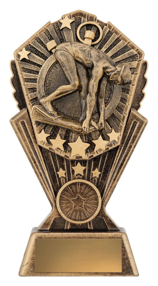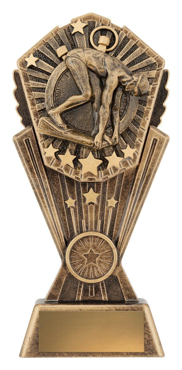 Brilliant ‘Cosmos’ series of male Swimming trophies – available in 3 sizes with space for colour logo.