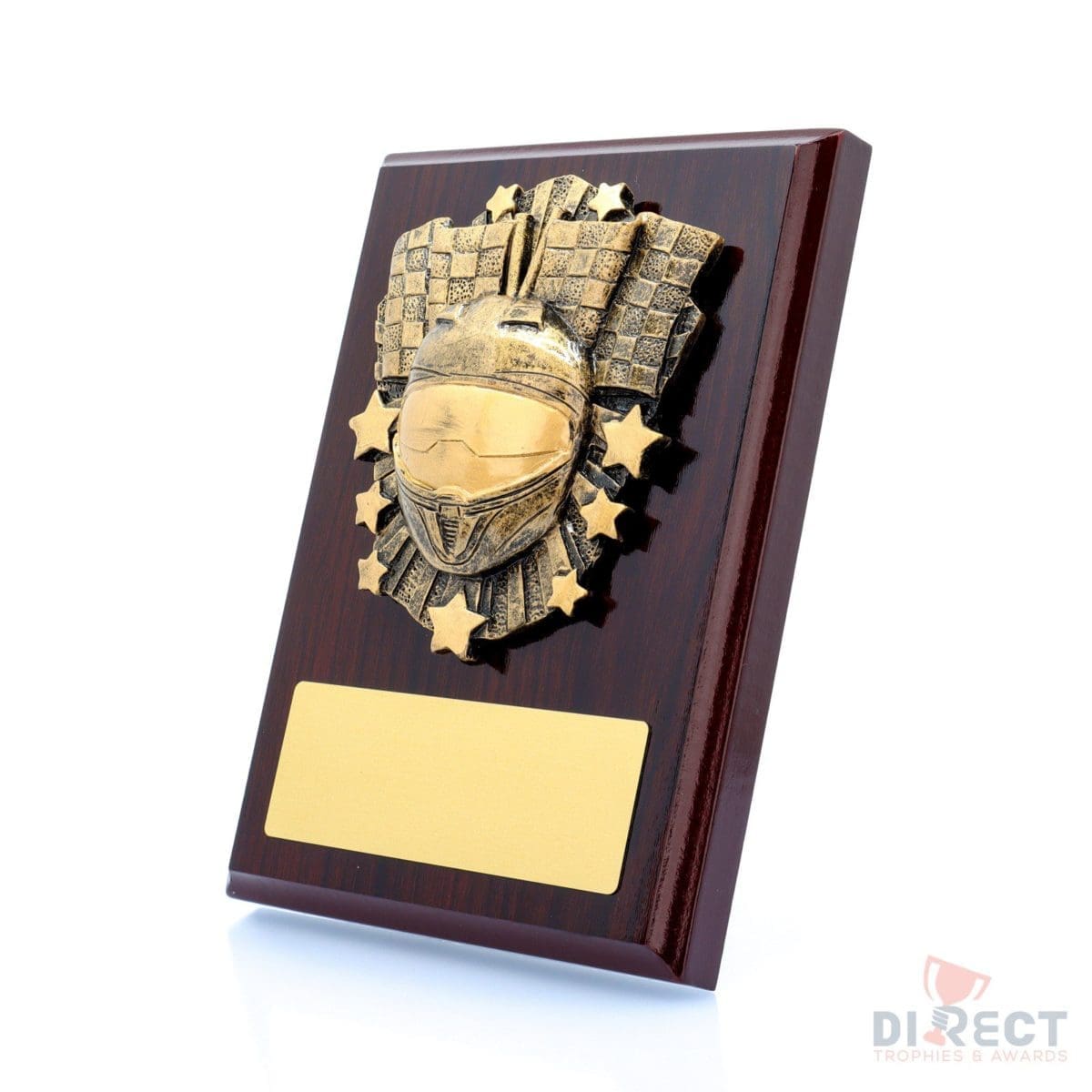 A classic gloss mahogany plaque with brilliant Cosmos front accompanied with a european gold plate showing black text engraving. Plaque includes silver screw on stand for display. Available in 2 sizes.
