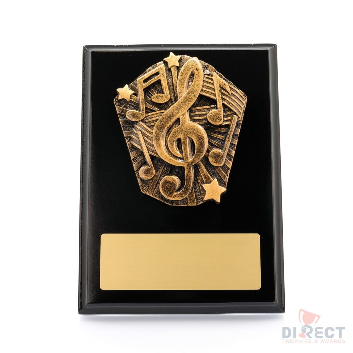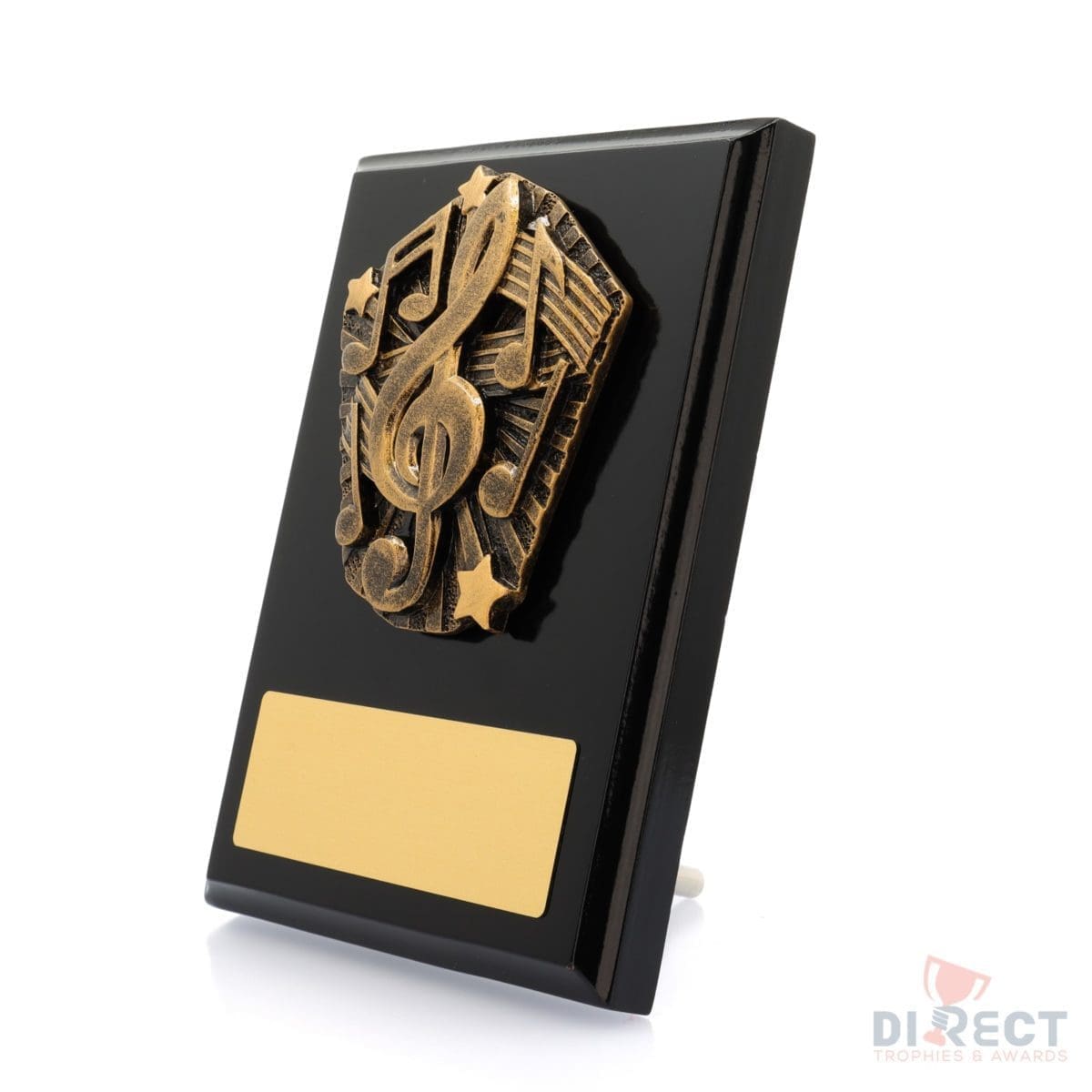 A classic gloss black plaque with brilliant Cosmos front accompanied with a european gold plate showing black text engraving. Plaque includes silver screw on stand for display. Available in 2 sizes.