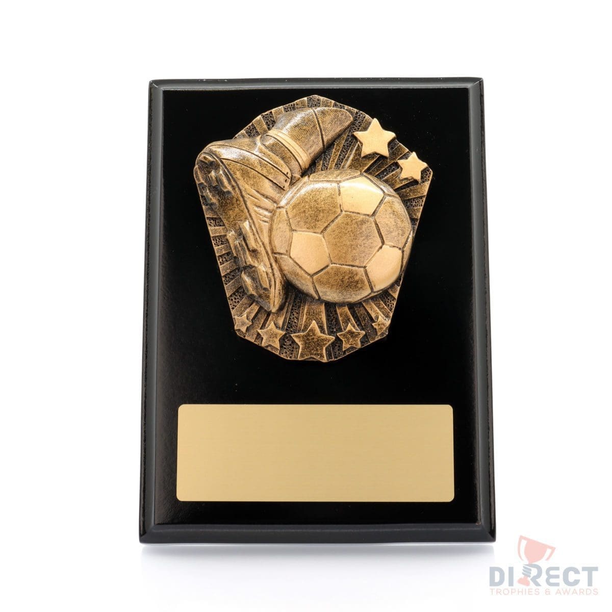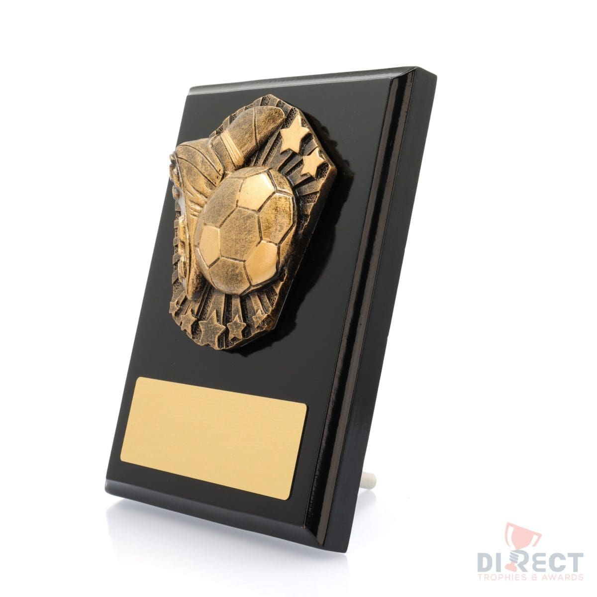 A classic gloss black plaque with brilliant Cosmos front accompanied with a european gold plate showing black text engraving. Plaque includes silver screw on stand for display. Available in 2 sizes.