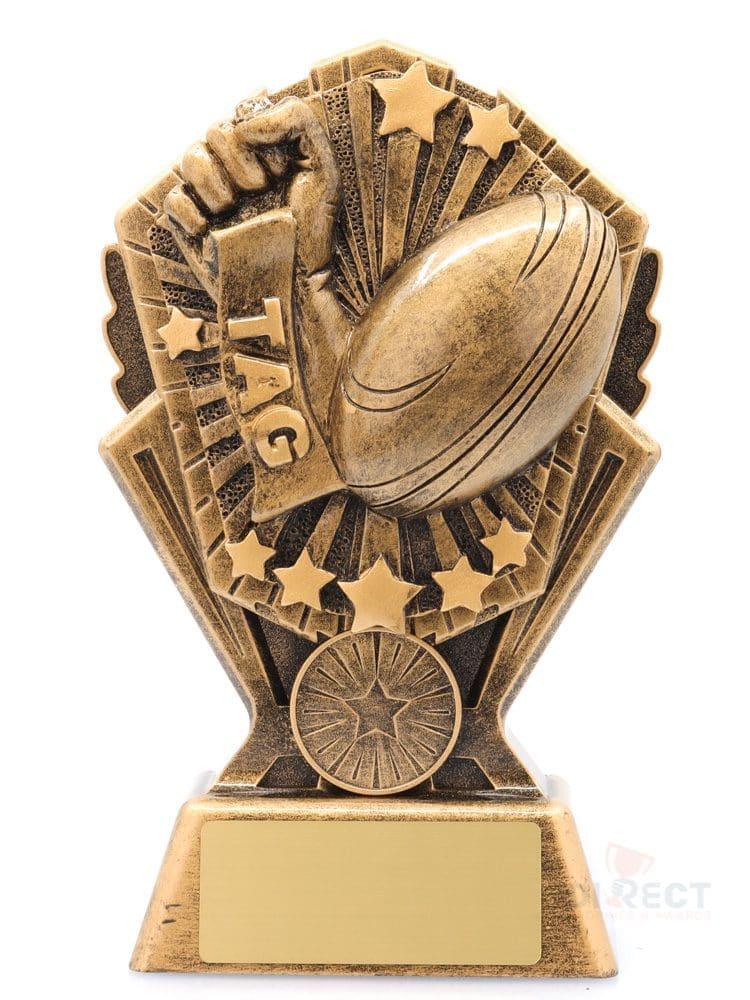 Brilliant series of ‘Cosmos’ trophies for Tag Football. Trophy series available in many different sports and activities. Available in 3 sizes with space for custom insert if required.