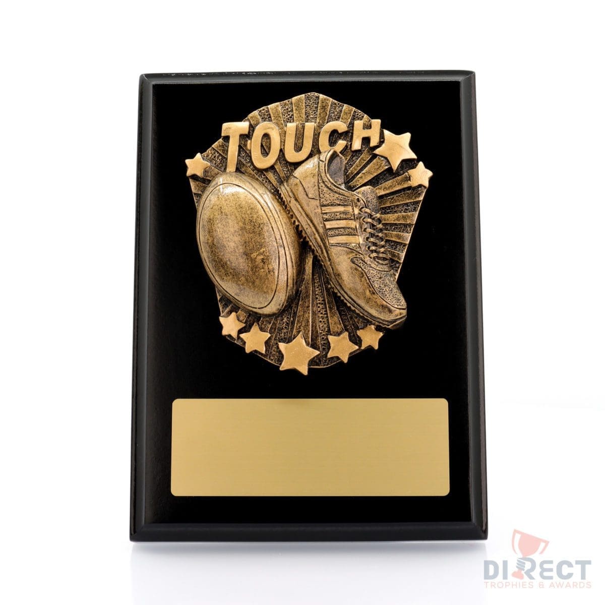 A classic gloss black plaque with brilliant Cosmos front accompanied with a european gold plate showing black text engraving. Plaque includes silver screw on stand for display. Available in 2 sizes.
