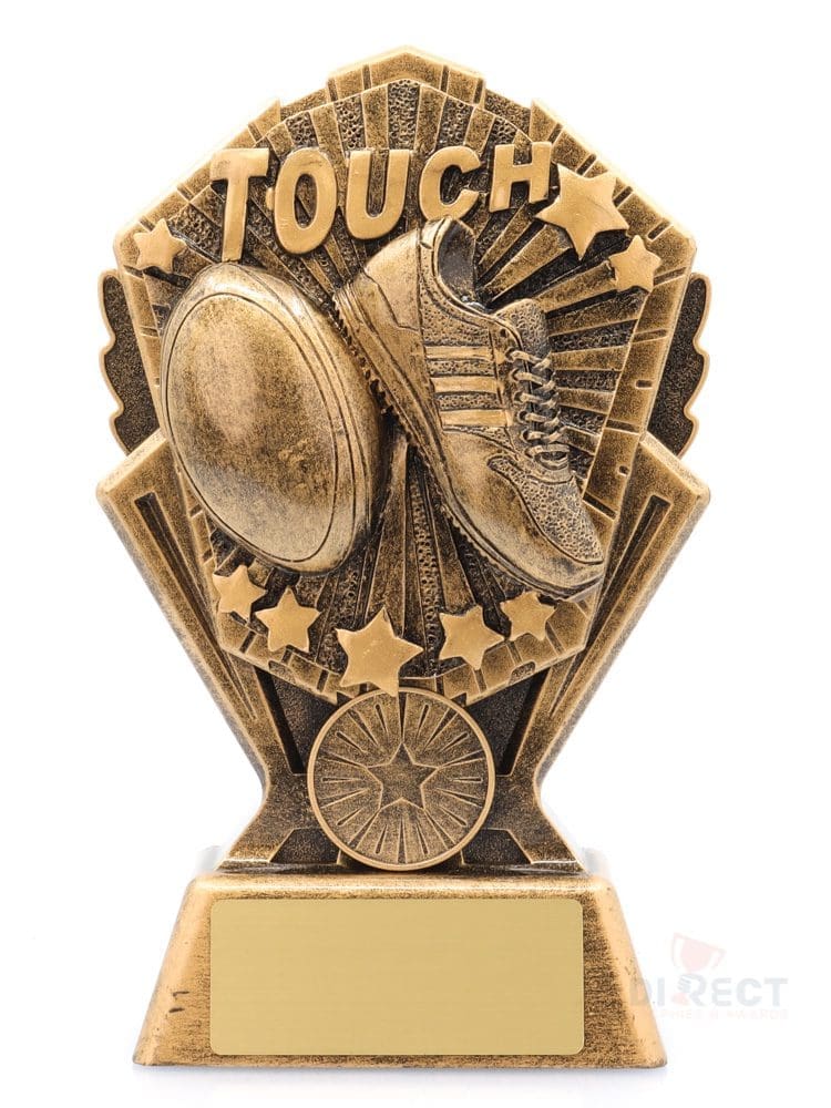Brilliant series of ‘Cosmos’ trophies for Touch Football. Trophy series available in many different sports and activities. Available in 3 sizes with space for custom insert if required.