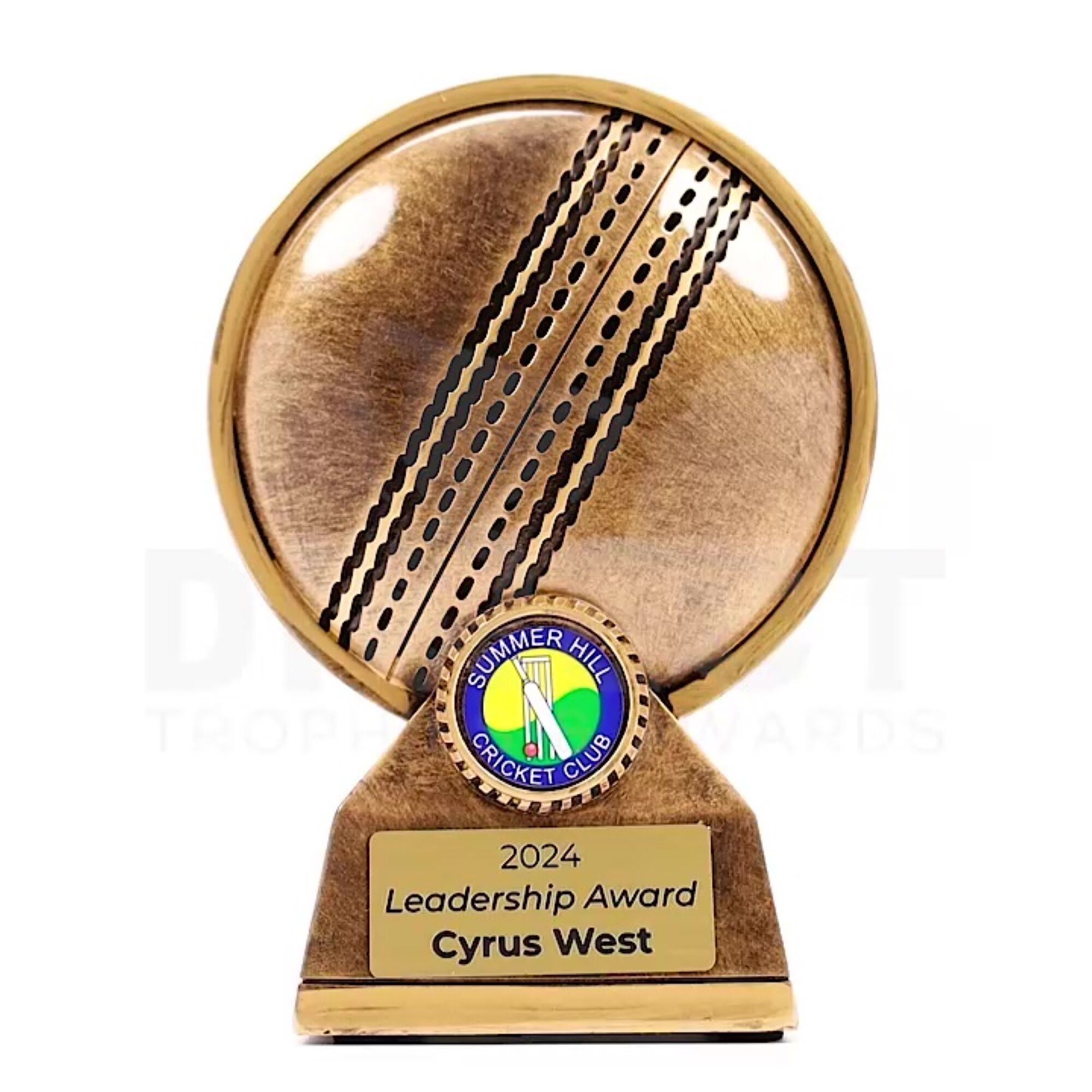 The Cretan Series Trophy features a robust gold round cut resin design, highlighting sport icons. With its thick and heavy gold finish, it offers space for your custom image and complimentary laser engraving for a standout presentation.