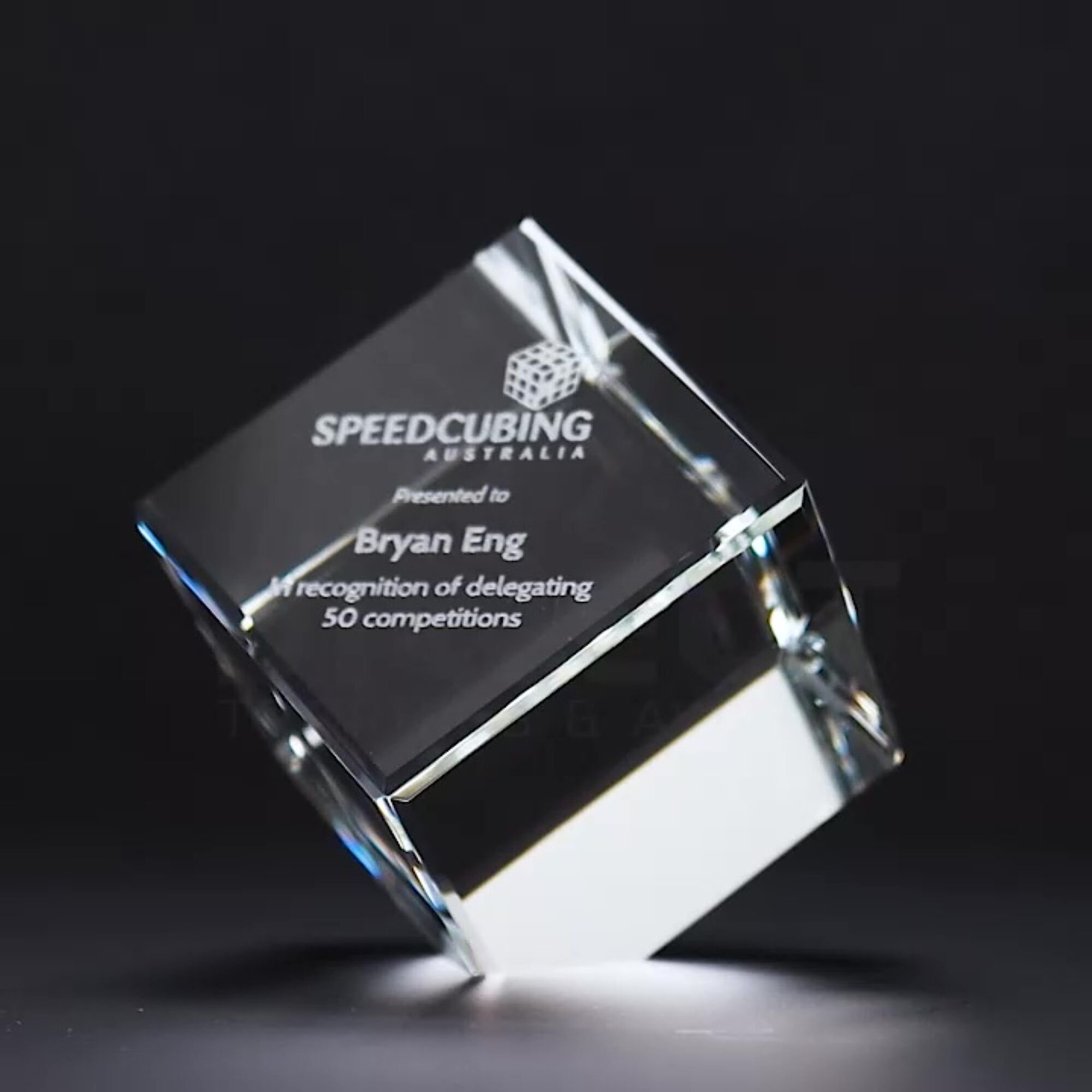 Crystal Cube Award offers a distinctive and bold trophy option. Recognise corporate milestones and achievement in other fields of activity. The iconic cube design will provide an ongoing reminder of the success of your trophy winner. Supplied in presentation gift box.