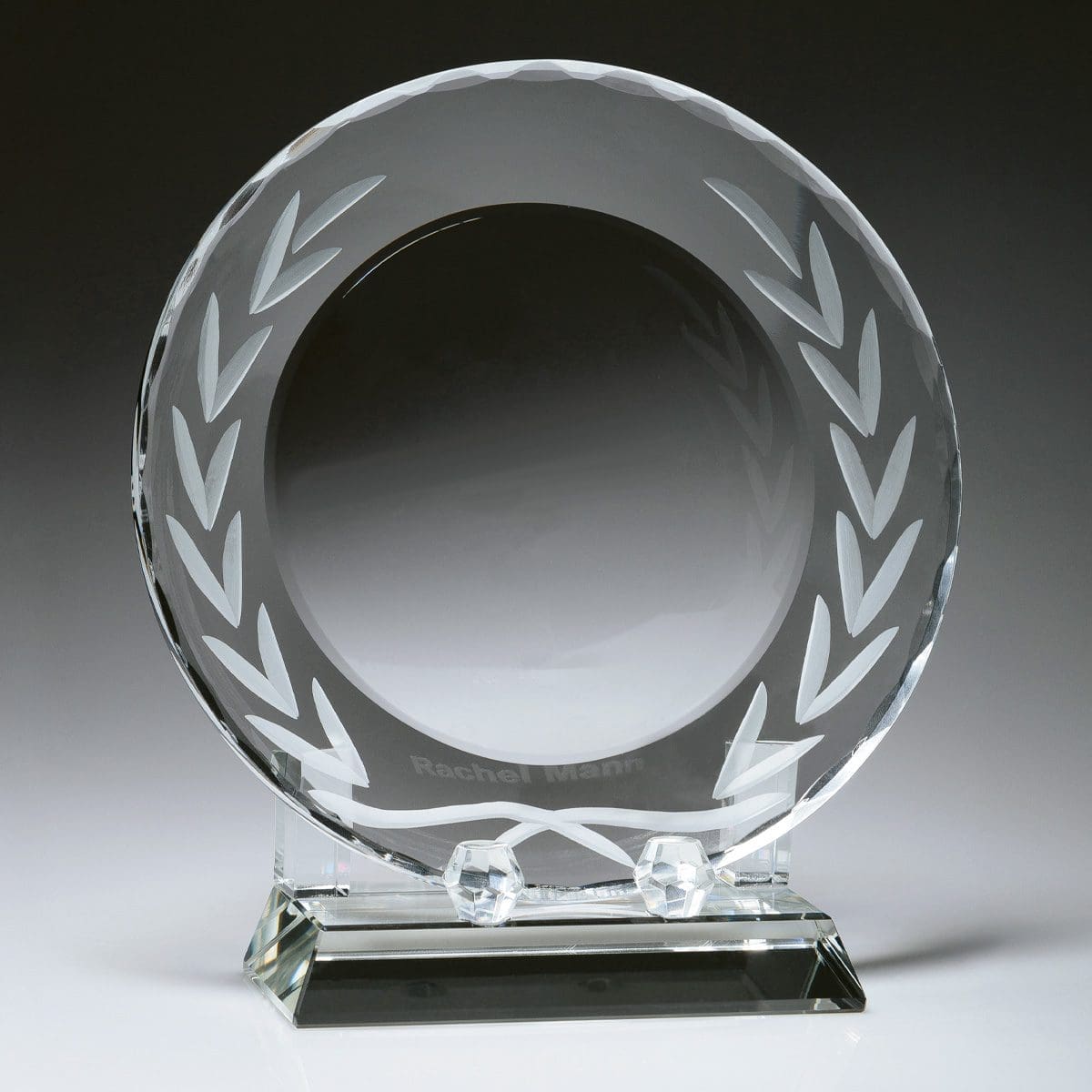 Unique award, the Crystal Tray presents an elegant and prestige trophy option. The crystal tray features faceted edges and pre-decorated wreath pattern. The item is supplied with base and in a presentation gift box.