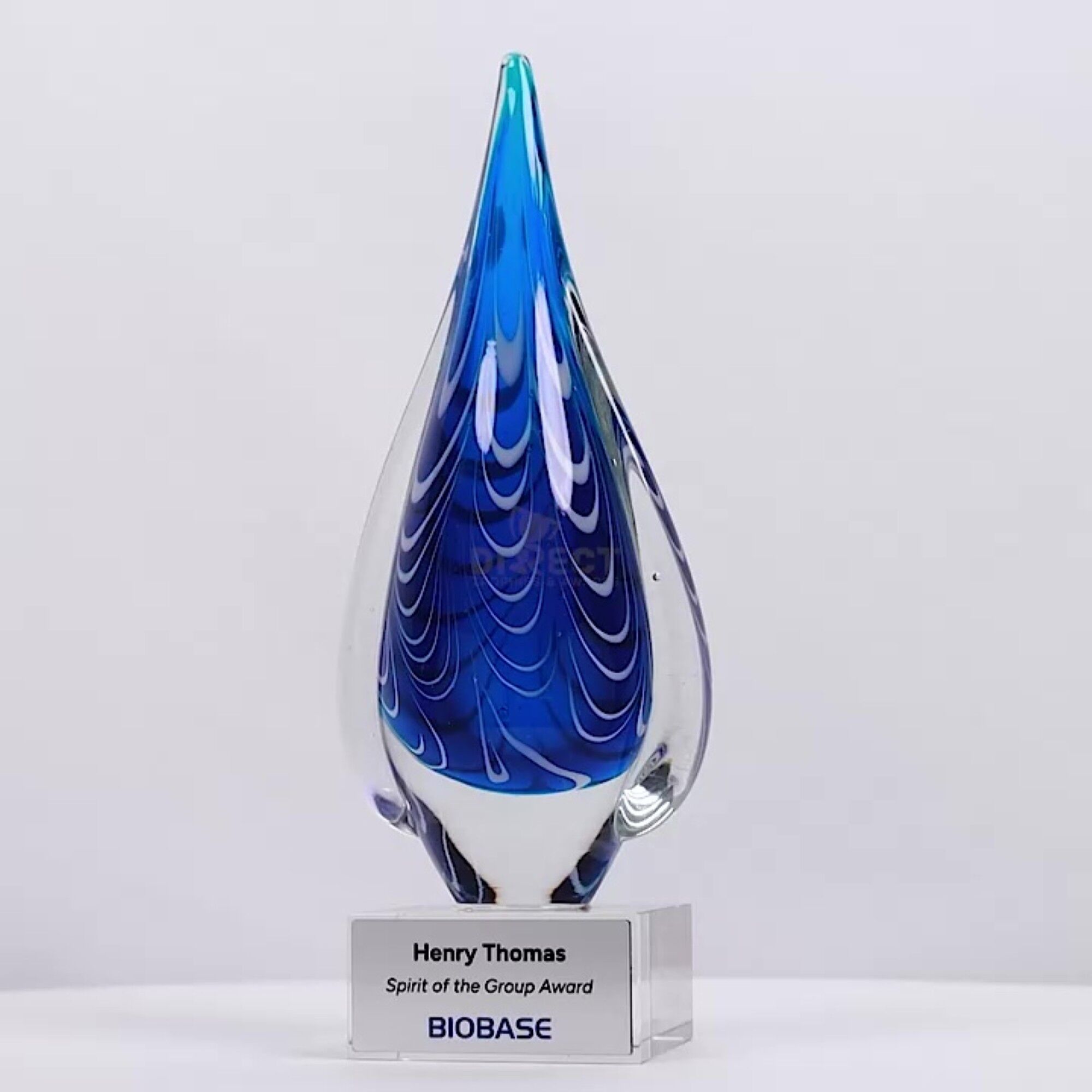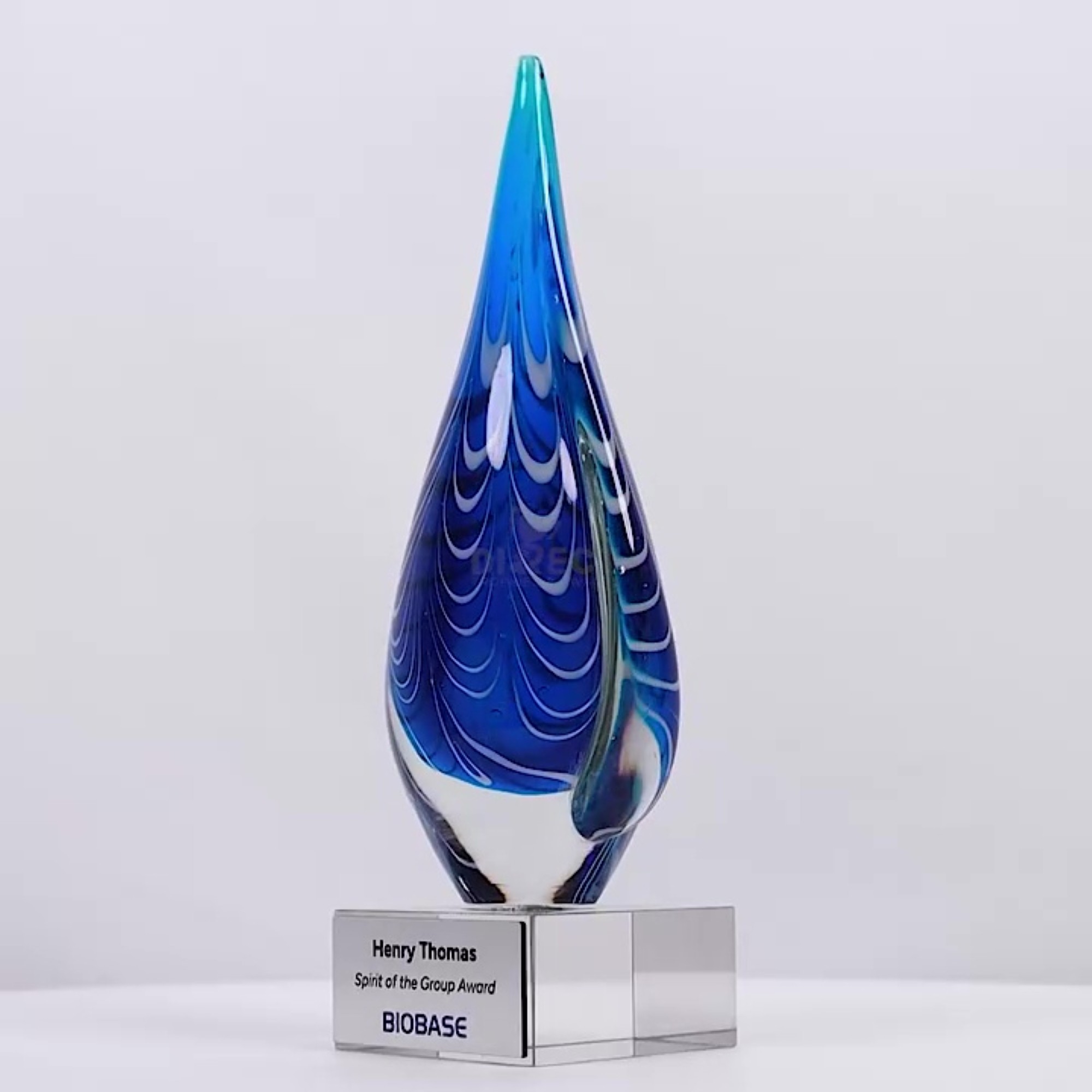 Art Glass Cumulus features a beguiling design with a cascading pattern of blue colours. Art Glass range offers variety of bold shapes and exciting colour combinations. Art Glass awards may be an attractive alternative to traditional corporate awards. Supplied in Gift Box. Base dimensions – 70 x 35mm