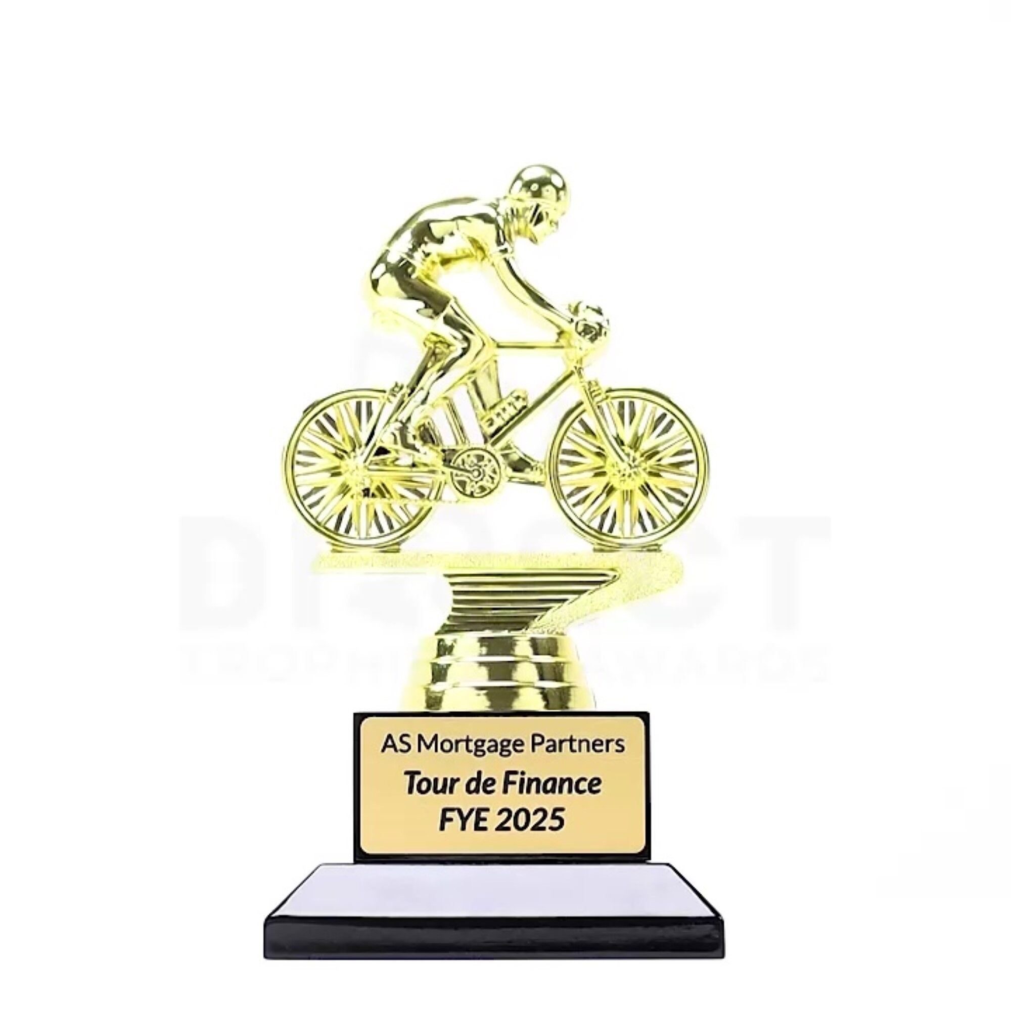 Introducing the Cycling Estrade Gold Trophy Series, offering a variety of sizes to suit your award needs. These trophies are beautifully showcased on a sleek gloss black timber base, adding an extra touch of elegance. With free laser engraving included, you can personalize these trophies to make them truly unique. The Cycling Estrade Gold Trophies are a symbol of excellence in the world of cycling, perfect for honoring outstanding achievements and celebrating the sport.