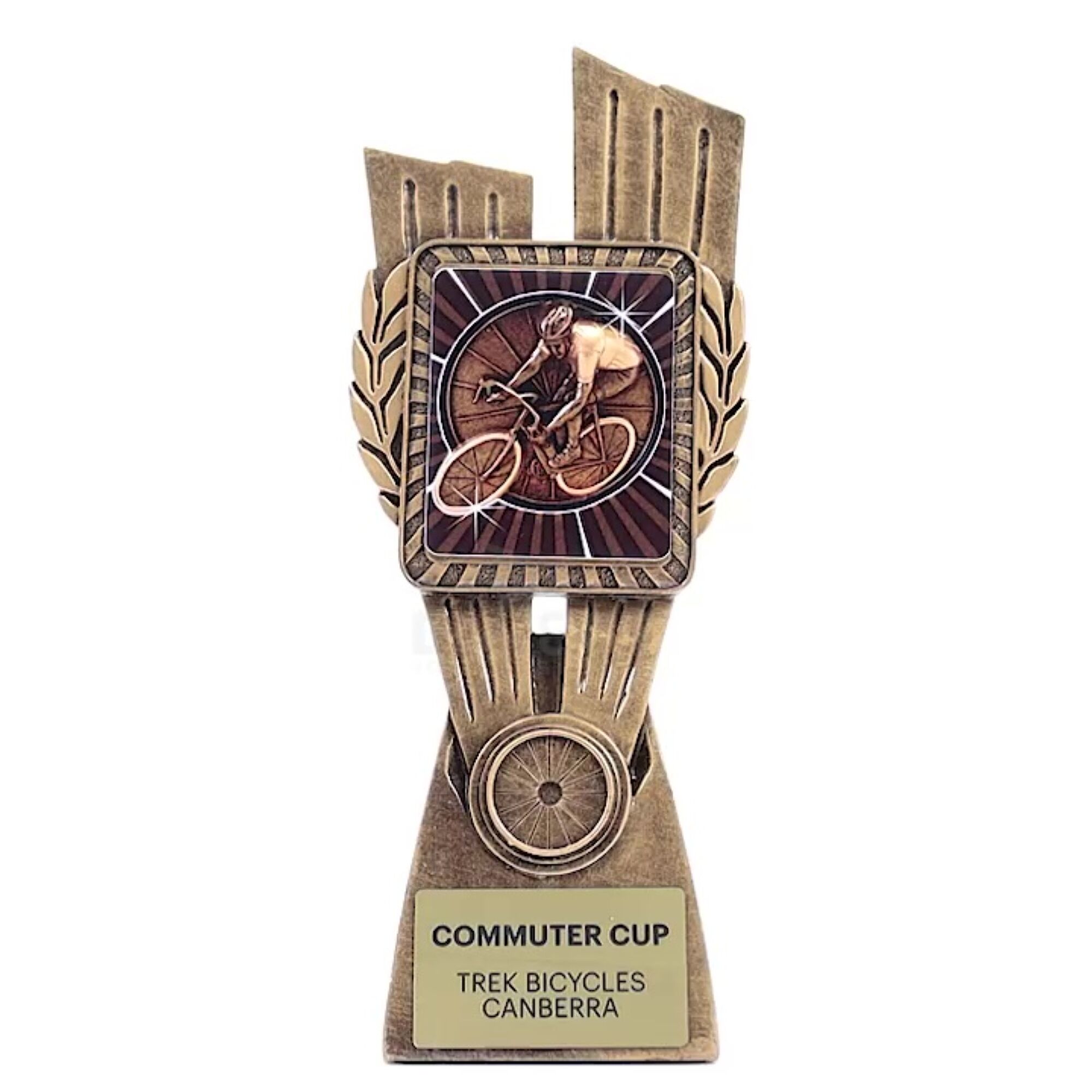 This Antique Gold Lynx Trophy is the perfect theme award for various Cycling competitions and events. Featuring a classic wreath and vibrant design, these Cycling trophies are customisable and available in 4 impressive sizes.