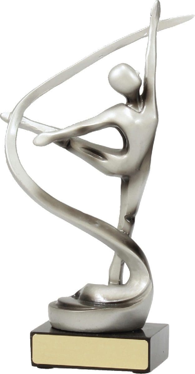 Prestige award for dance competitions and events, design features elegant, abstract dancer mid motion. Finished with nice, black base for engraving requirements, this dance trophy is a versatile award. 1 size only.