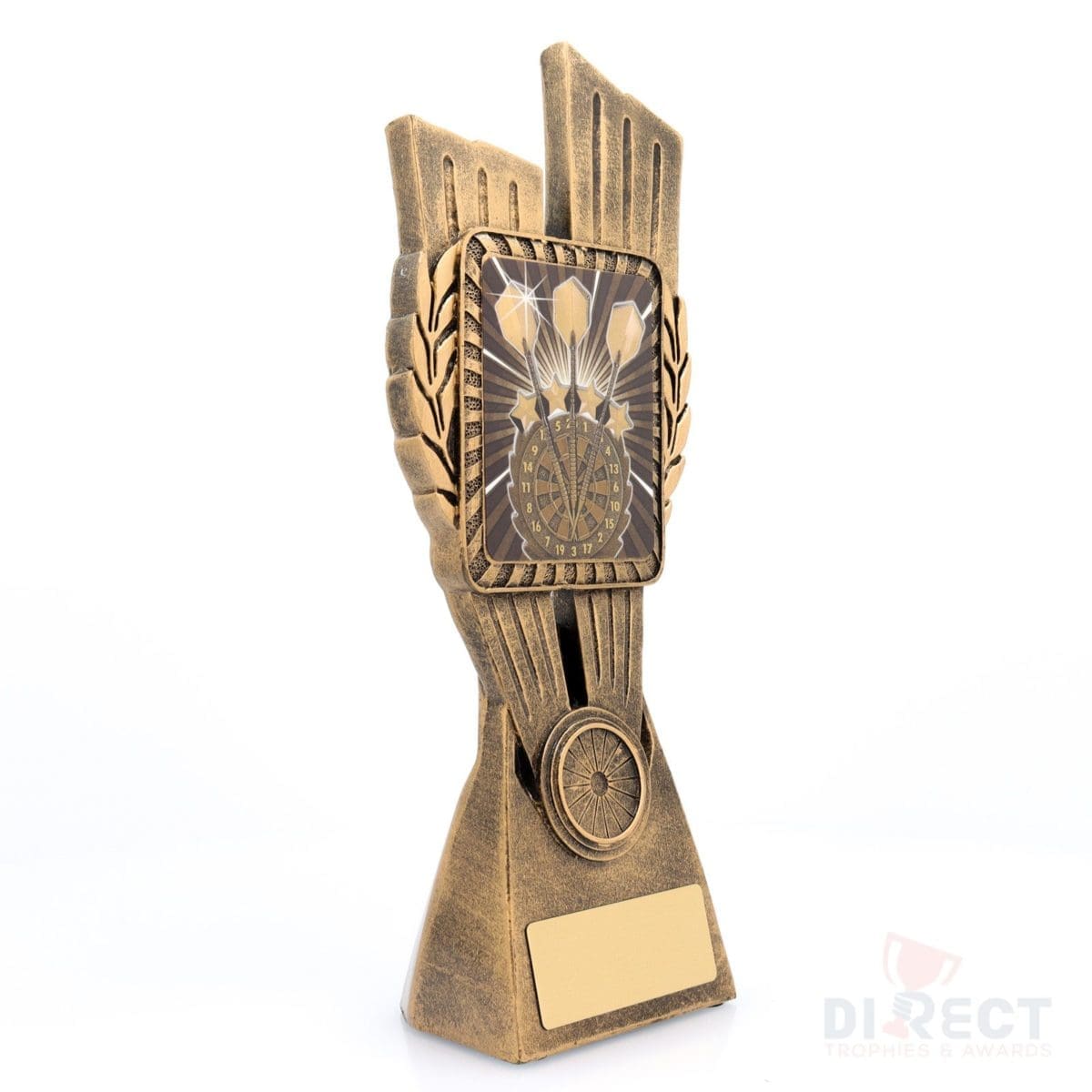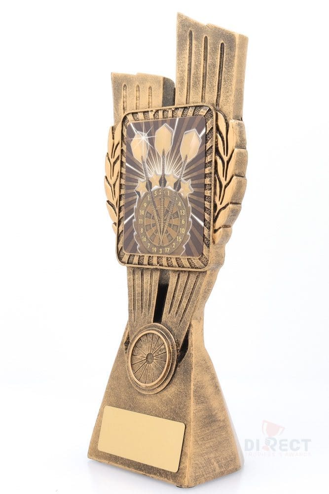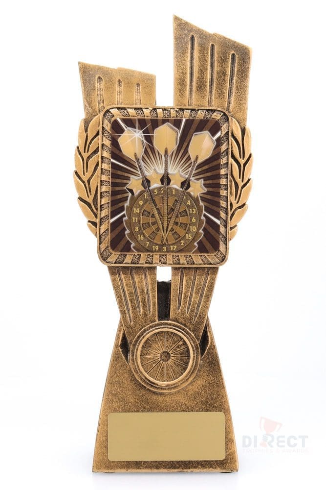 This Antique Gold Lynx Trophy is the perfect theme award for various Darts competitions and events. Featuring a classic wreath and vibrant design, Darts trophies are customisable and available in 4 impressive sizes.
