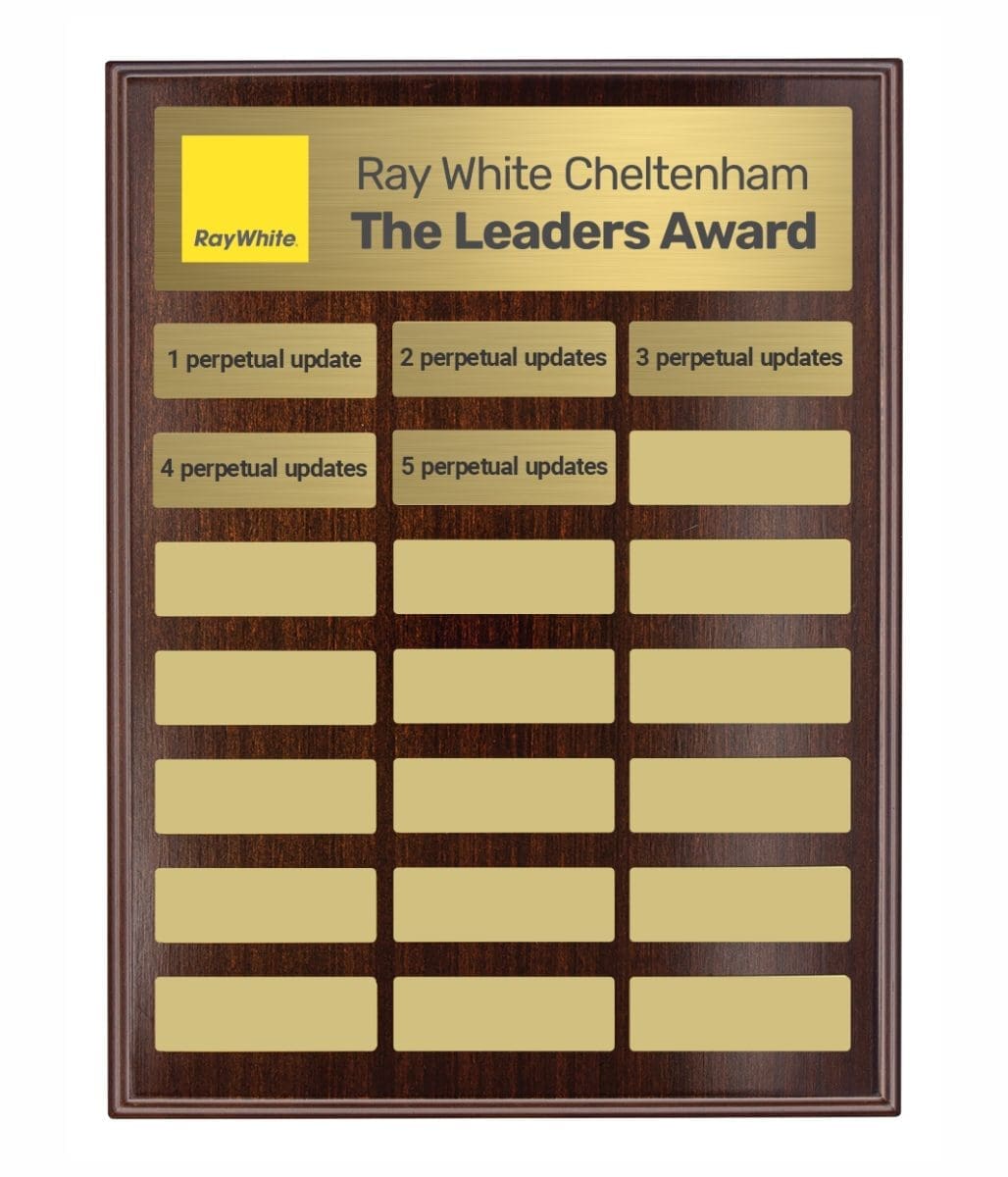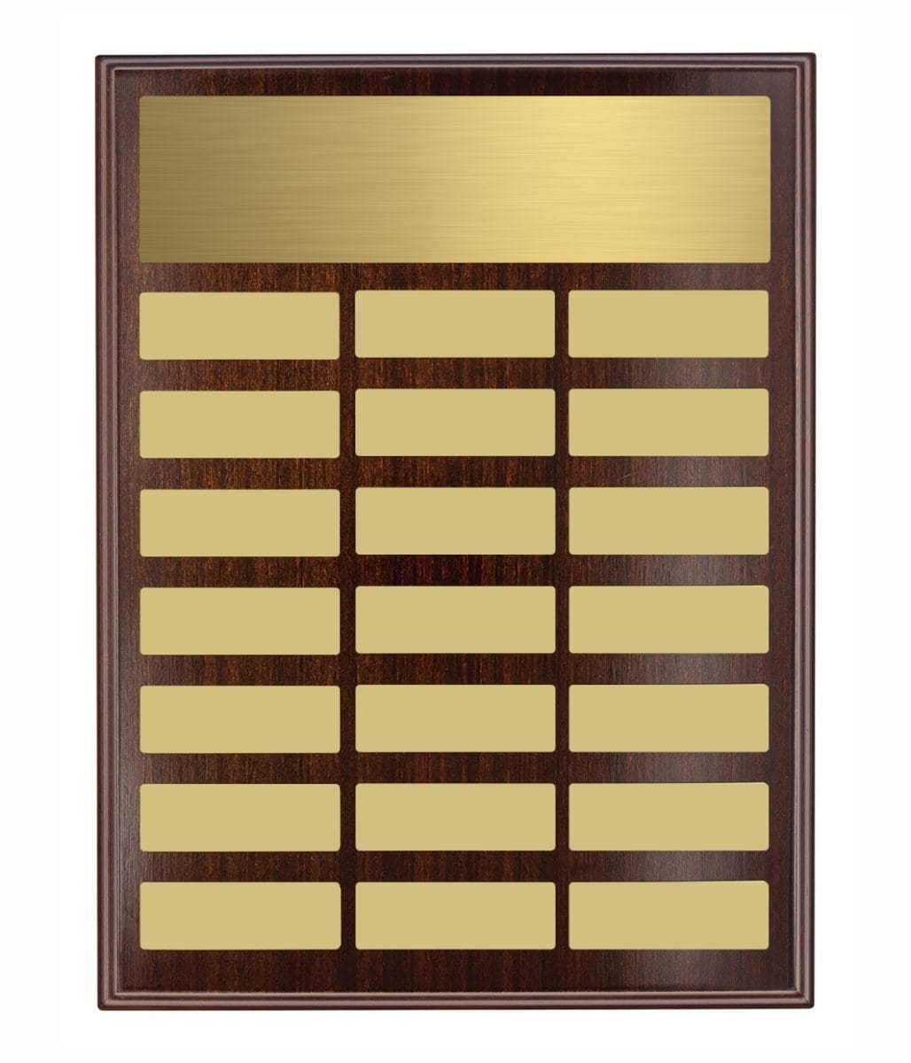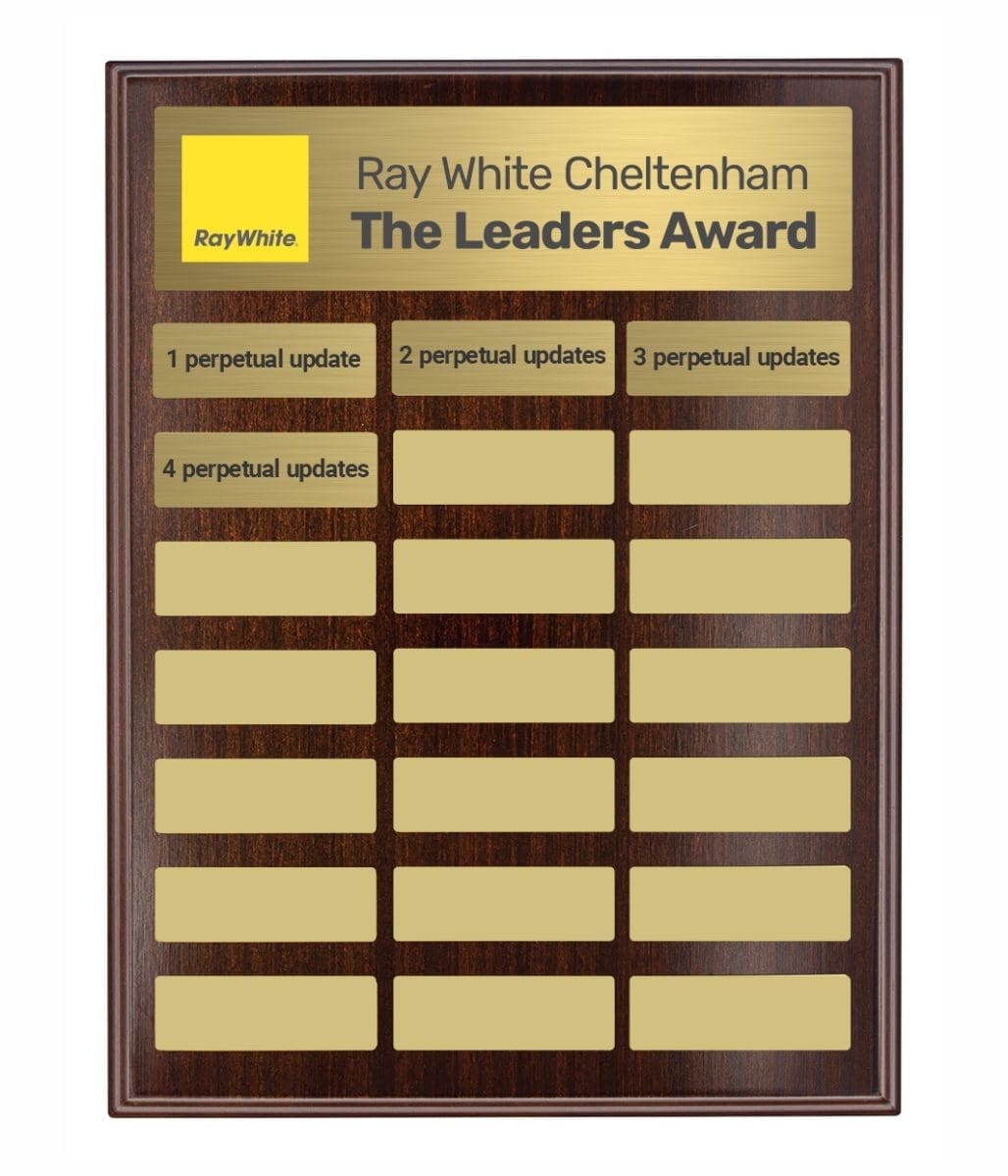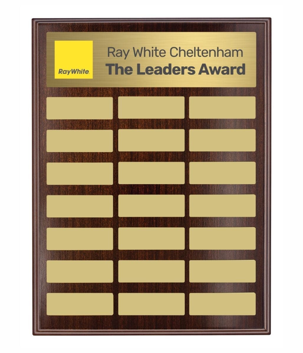 Directory Colour Perpetual Award plaque features plate place holders allowing for ease of placement for perpetual updates. This plaque is suited as an annual award & includes backstand. Full colour header plate included in the price with first perpetual update. Extra updates additional cost.