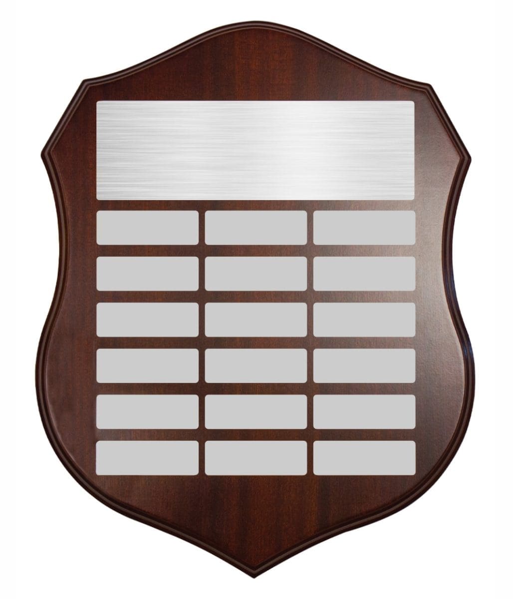Distinction Colour Perpetual Shield Silver features plate place holders allowing for ease of placement for perpetual updates. This shield is suited as an annual awards. Full colour header plate included in the price with first perpetual update. Extra updates additional cost.