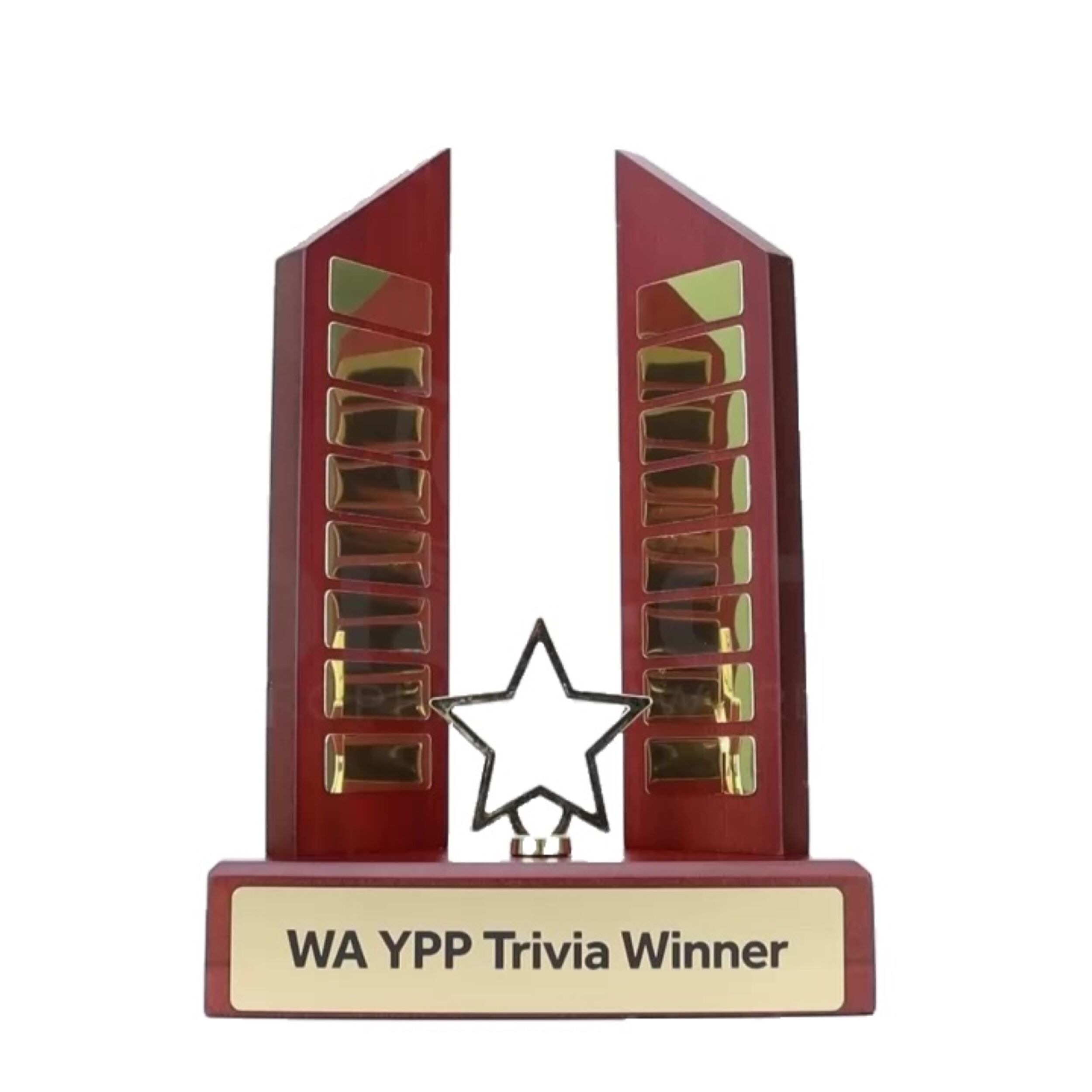 Popular perpetual award series that offers considerable space for your engraving requirements. Blank plates included as per setup shown. Title plate included in the price. Engraving on perpetual plates extra cost.