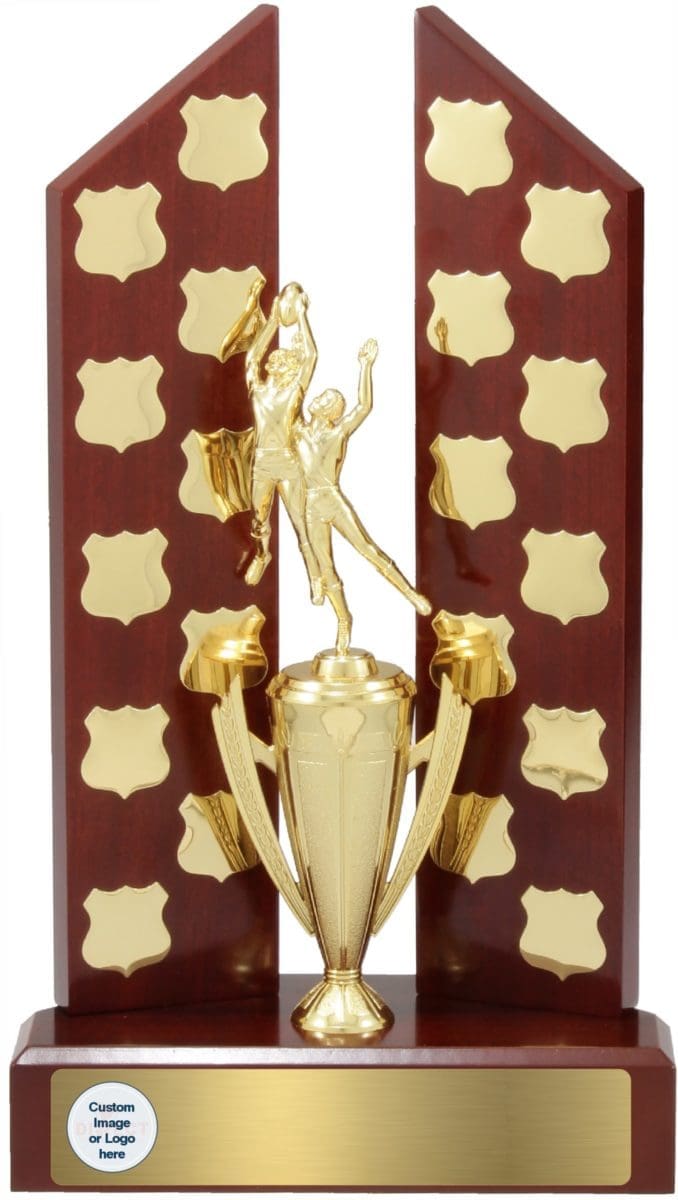 Popular perpetual award series that offers considerable space for your engraving requirements. Blank plates included as per setup shown. Title plate included in the price. Engraving on perpetual plates extra cost.