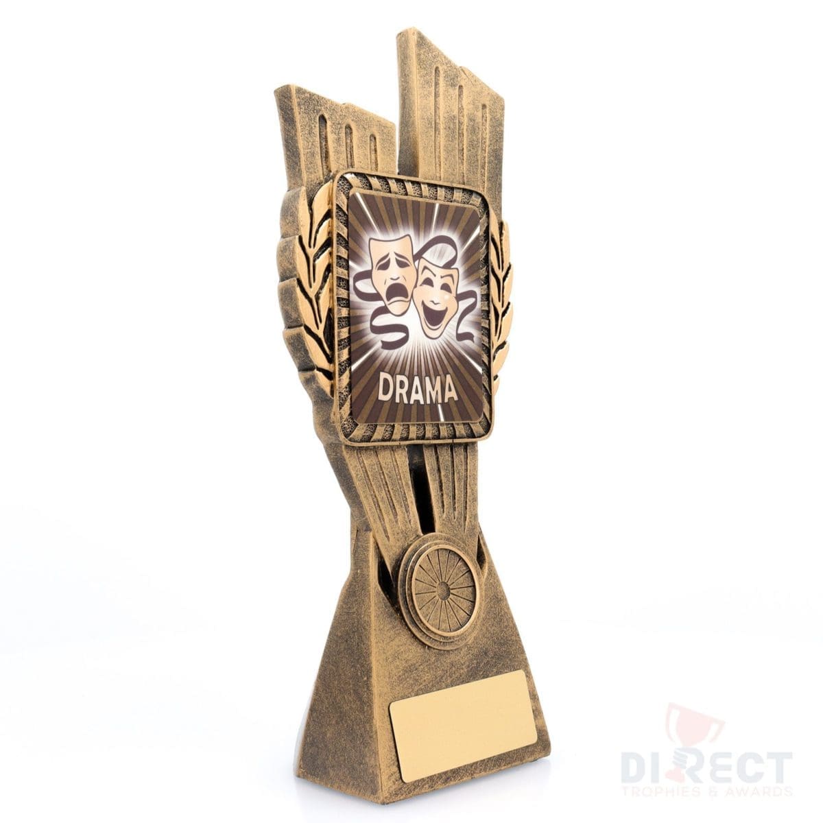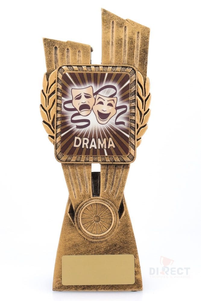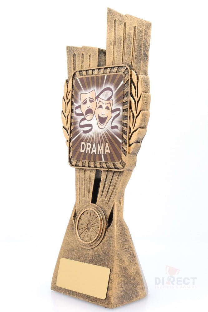 This Antique Gold Lynx Trophy is the perfect theme award for various Drama competitions and events. Featuring a classic wreath and vibrant design, Drama trophies are customisable and available in 4 impressive sizes.