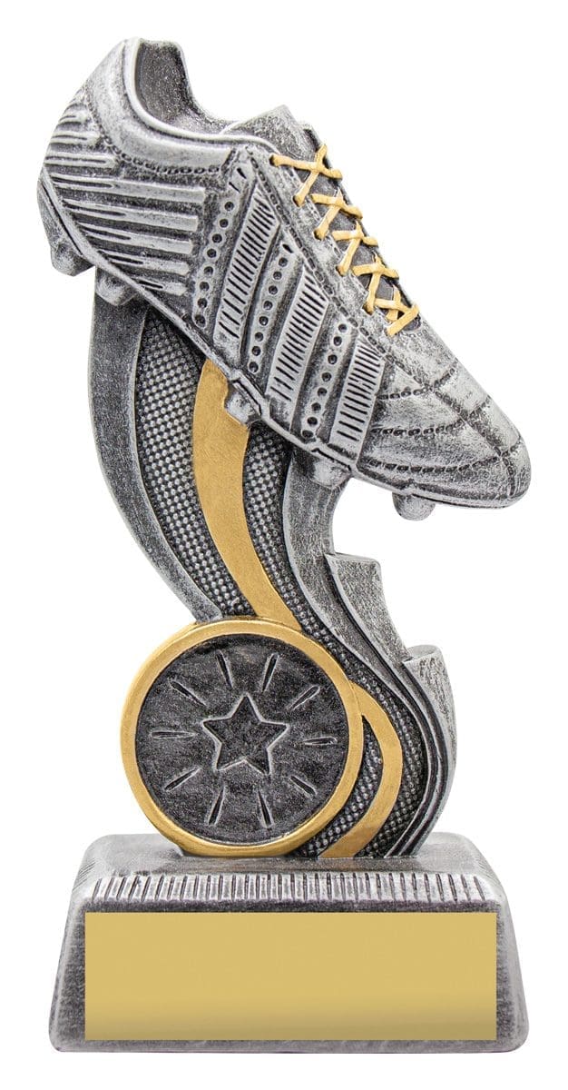 Dynamo series of raised boot in action – in antique gold or silver – offers versatile design suited for your team or club.