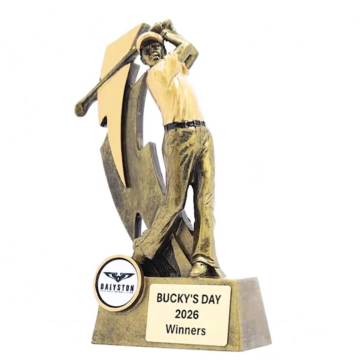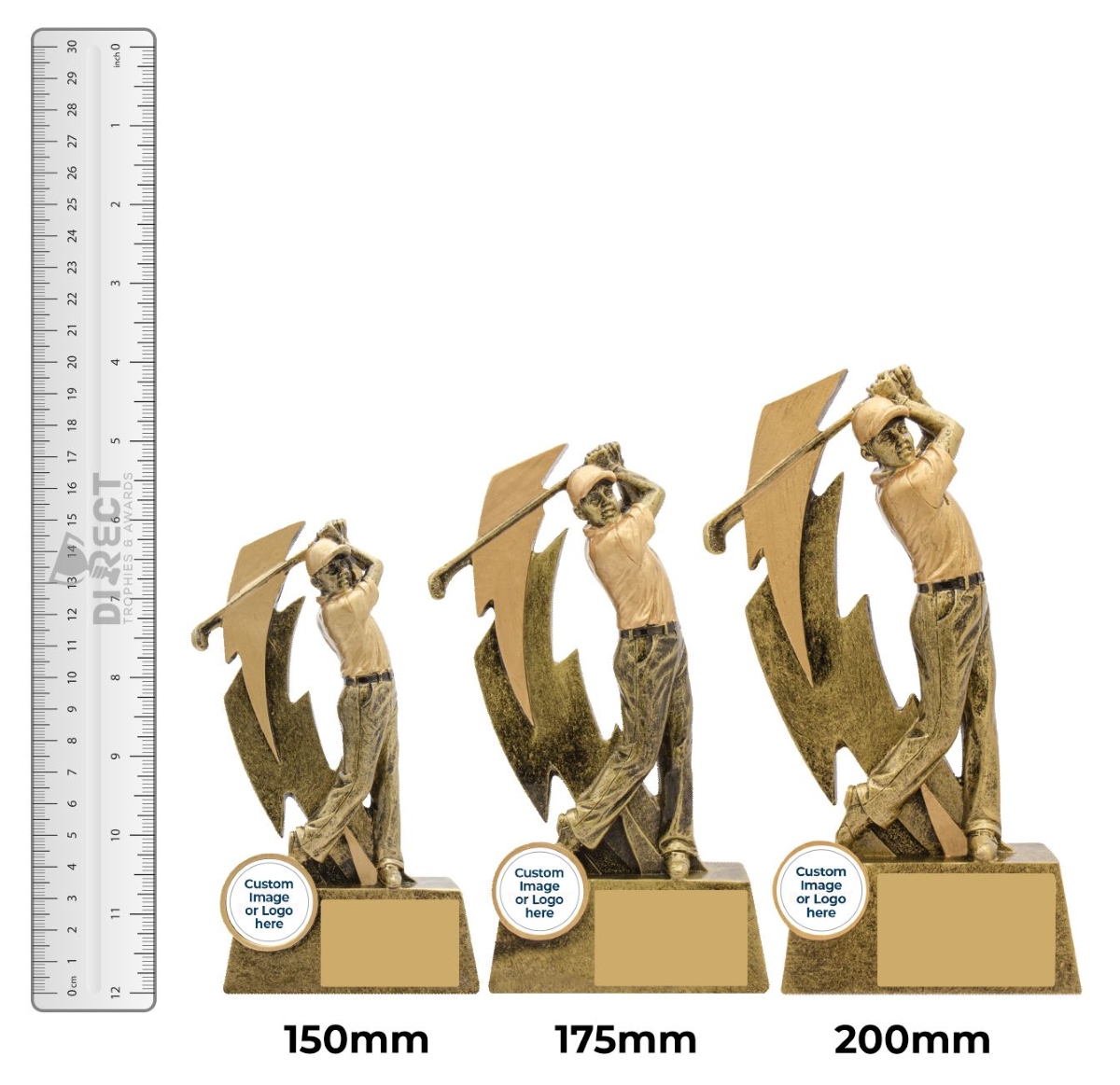 Introducing the Electrify Trophy Series: Marvel at the dynamic player captured in action with remarkable detail. Finished in a timeless classic gold color, it exudes elegance. Take advantage of our free laser engraving service to personalize your trophy. Available in various sizes, it’s the perfect choice to celebrate accomplishments in style.