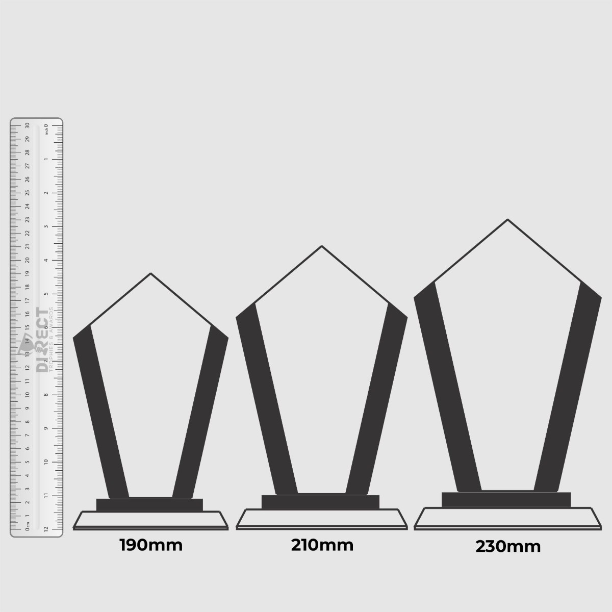 Features bold black accents that create a compelling contrast with the clear glass, delivering a sophisticated and impactful design. Ideal for recognising outstanding employees or exceptional leadership, this award arrives elegantly boxed and includes laser engraving for a personalised touch.