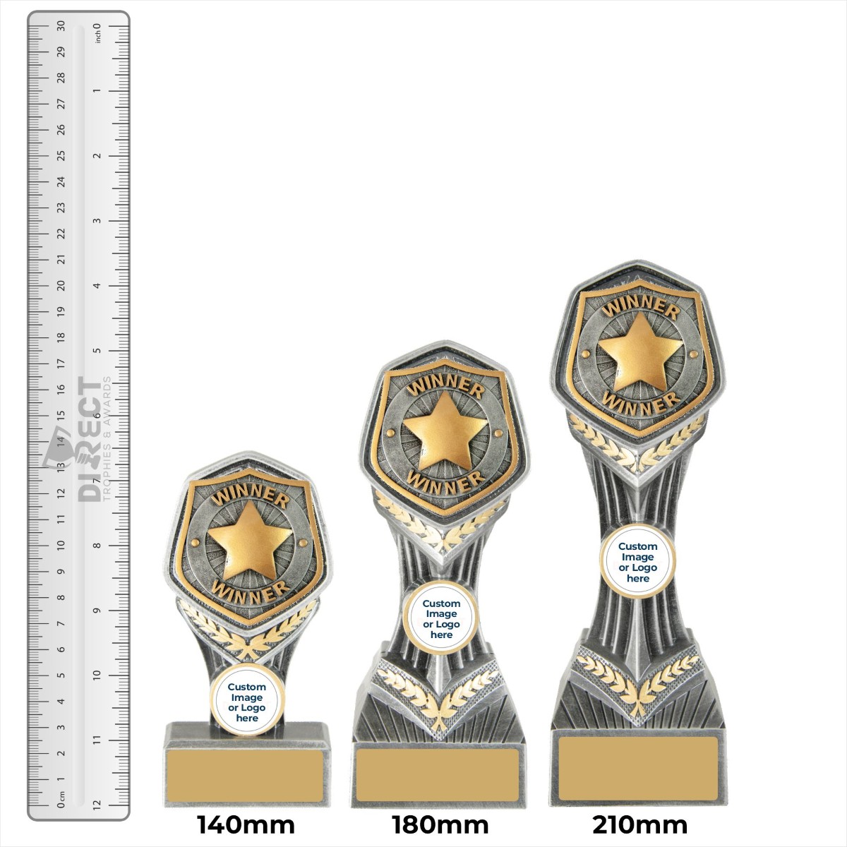 Truly elegant design – the Falcon Series features iconic tower like design with a peak standing award. Great choice for participation & top players alike at your club. Available in 3 sizes with a colour logo included to make it special!