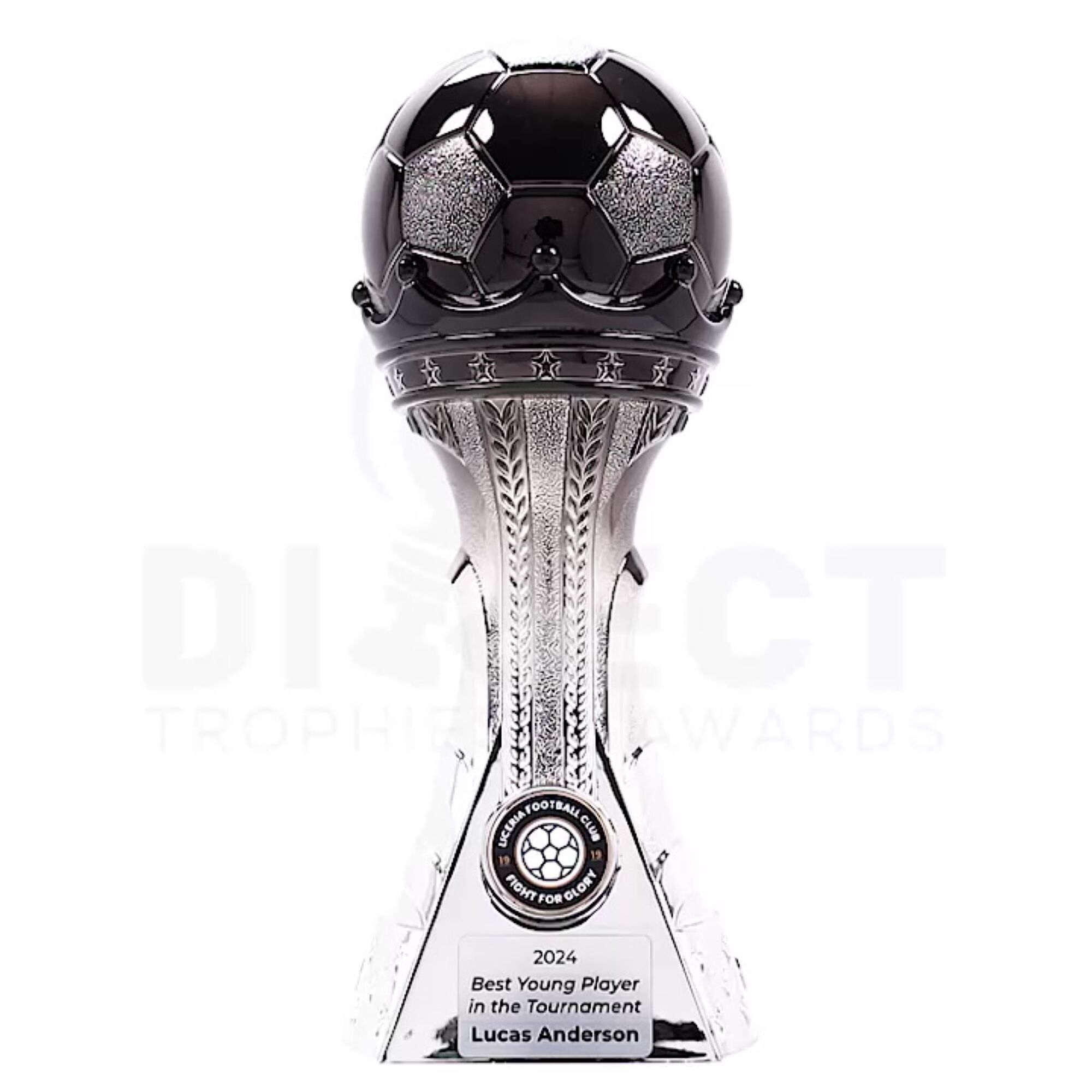 Fastball Series Trophy: Honour top performers with the Fastball Series Trophy, featuring a ball-topped design with a sleek metallic black to silver fade. Ideal for special awards, it offers space for custom images and complimentary laser engraving.