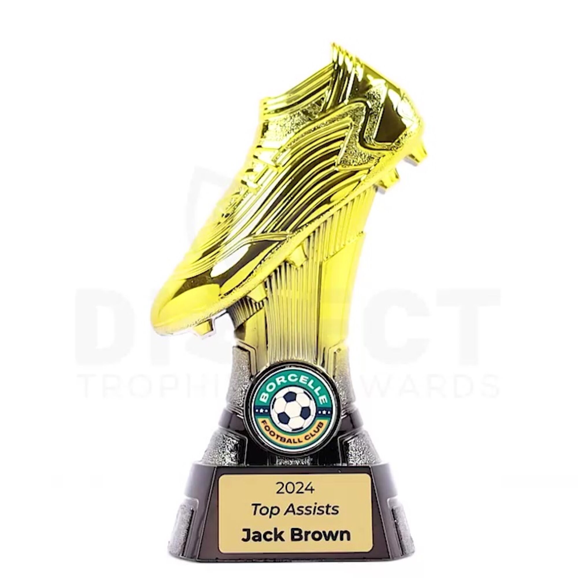Faststriker Series Trophy: Celebrate high achievers with the Faststriker Series Trophy, featuring a striking boot design with a metallic gold-to-black fade. Perfect for special awards, it includes space for your custom image and complimentary laser engraving.