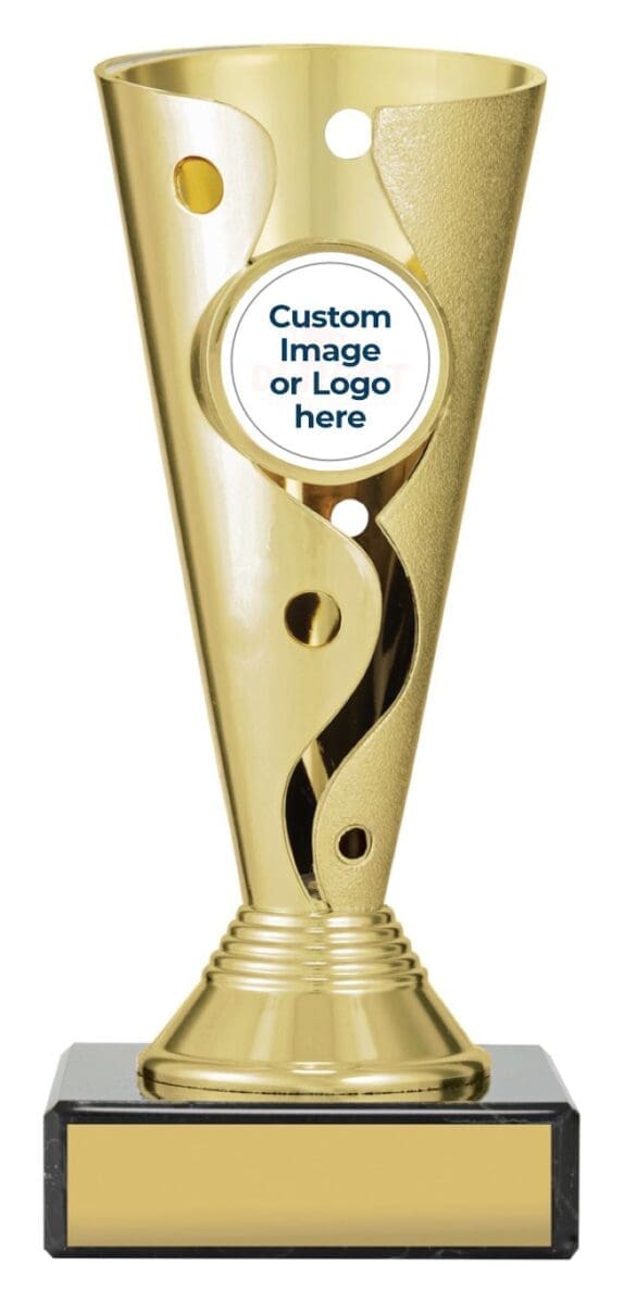 Festiva Trophy Cup Series: Perfect for honoring a wide range of achievements, this captivating trophy features a vibrant and eye-catching design. The striking color scheme adds a touch of excitement, while the sleek black marble base provides a sophisticated presentation. With Free Laser Engraving, you can customize this trophy to make it a truly unique and memorable award.