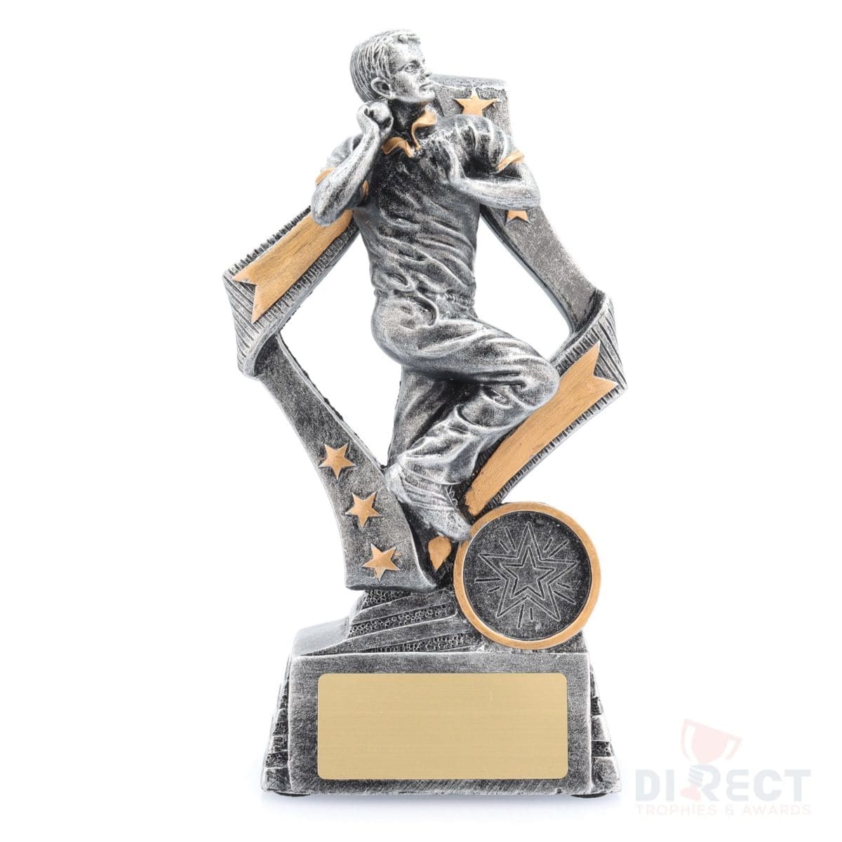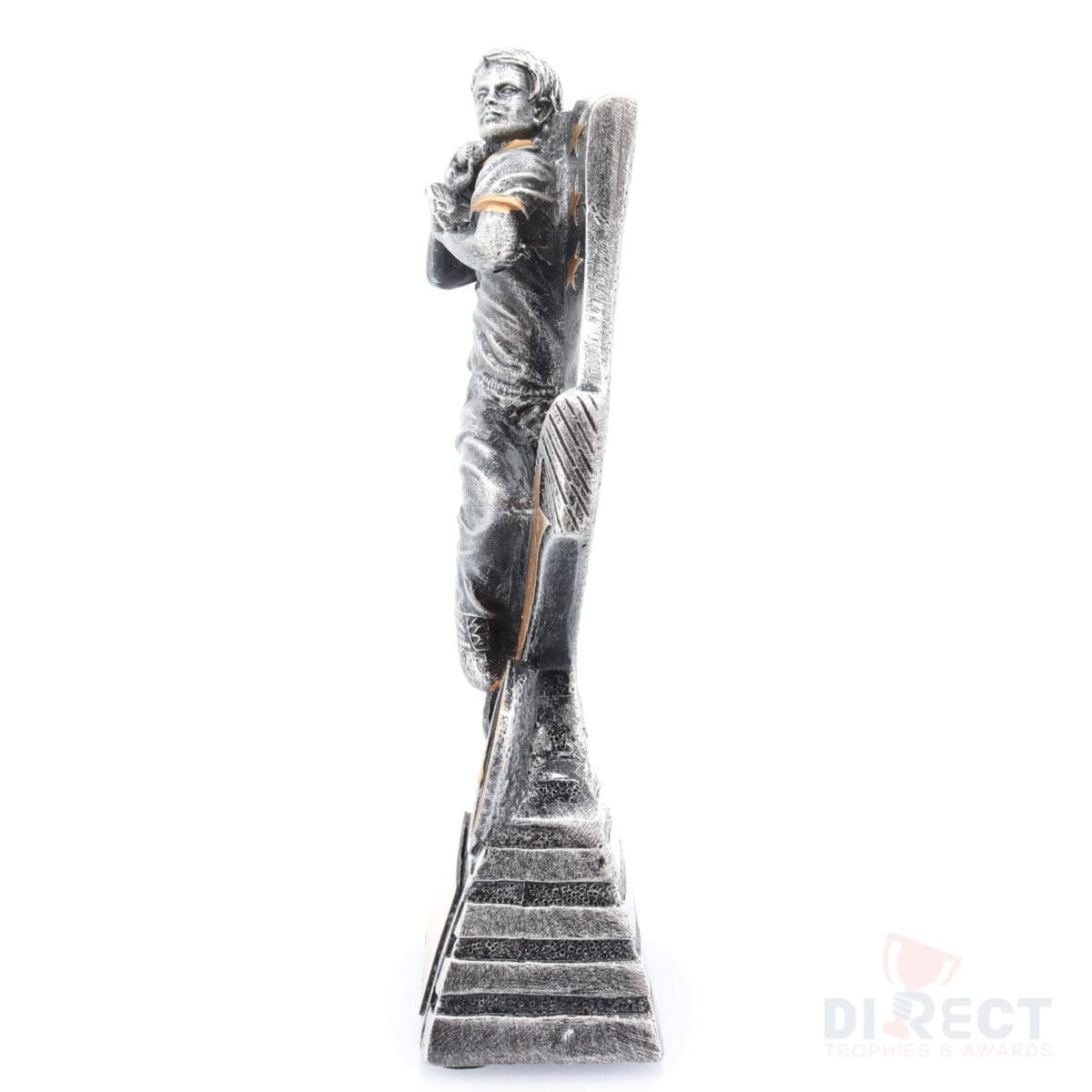 Inspiring design for your cricket trophies, Flag series features bowler in action and complete with classic antique silver colours. Substantial trophy with space for customisation if needed.