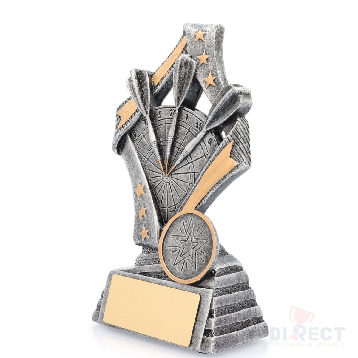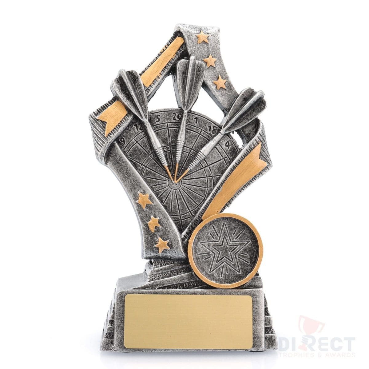 Dynamic darts trophies ideal for all participants at your event. These ‘Flag’ darts trophies feature a stylish star based design with iconic dart & board elements.