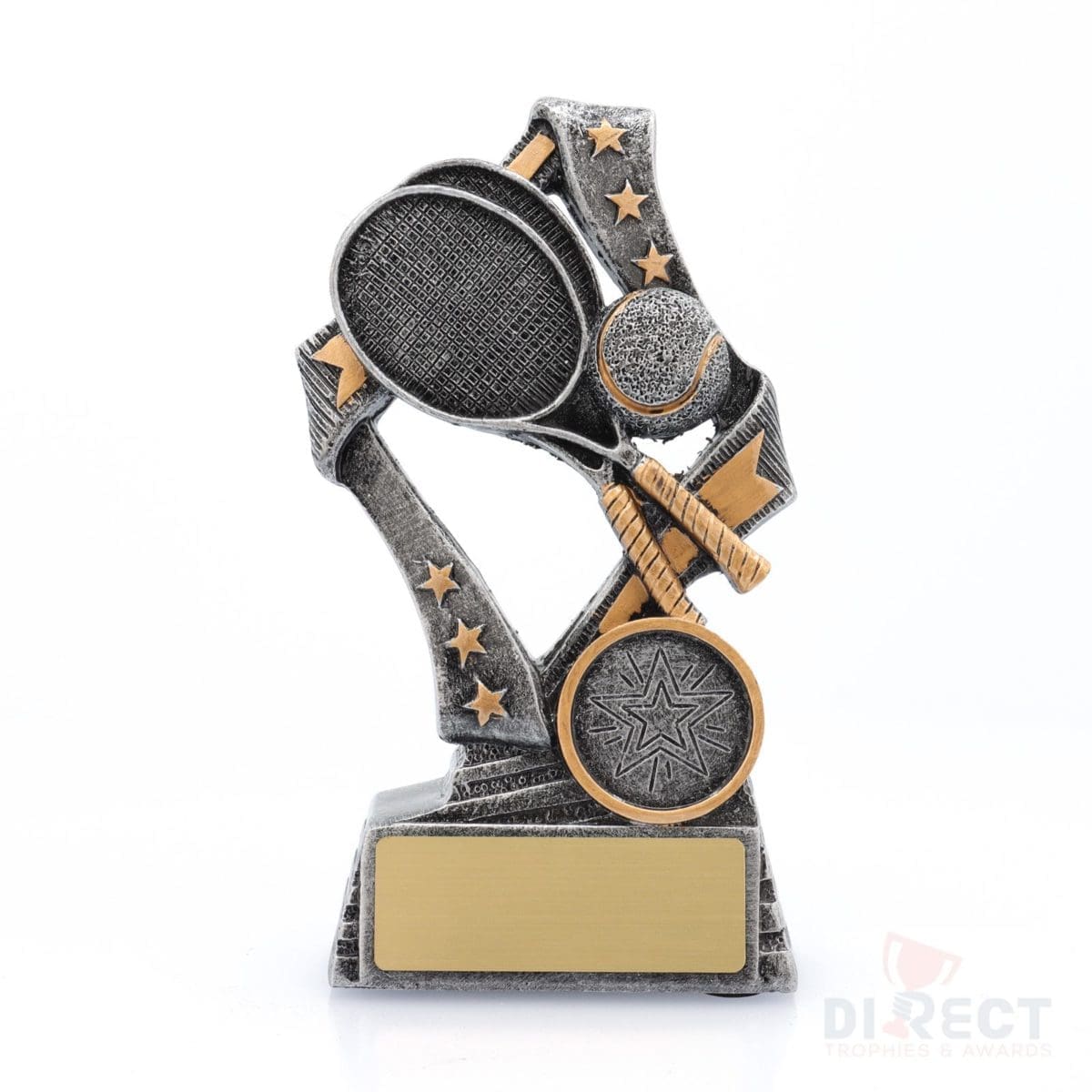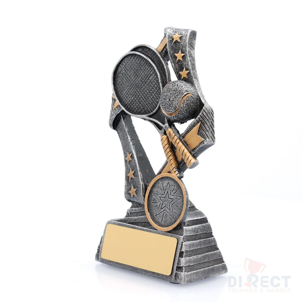 Dynamic tennis trophies perfect for male and female participants at your event. These ‘Flag’ tennis trophies feature a stylish star based design with iconic racquet and ball elements.