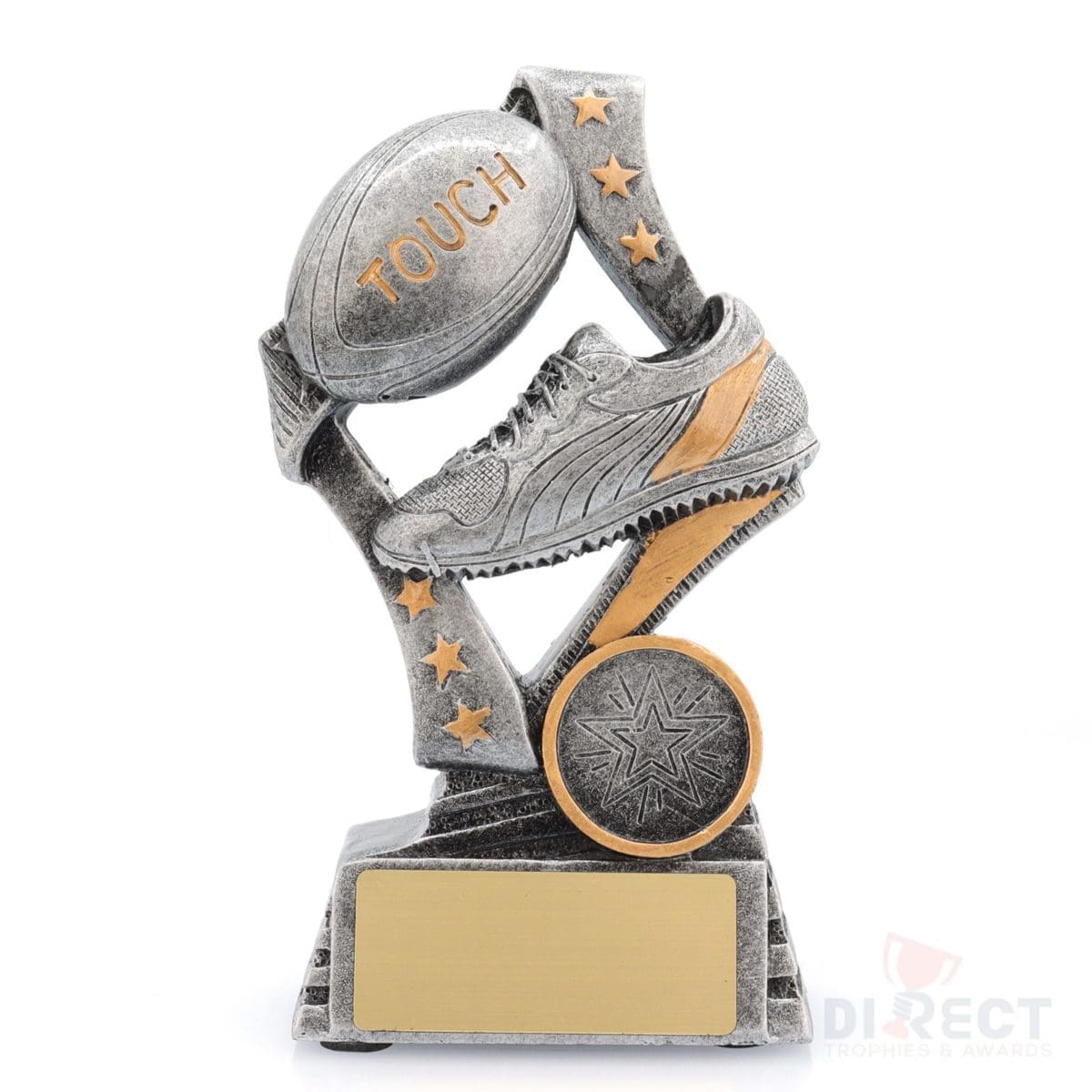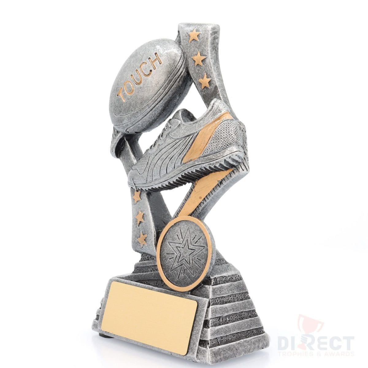 Dynamic touch football trophies perfect for participants – male or female – at your event or competition. Versatile theme to cover various awards.