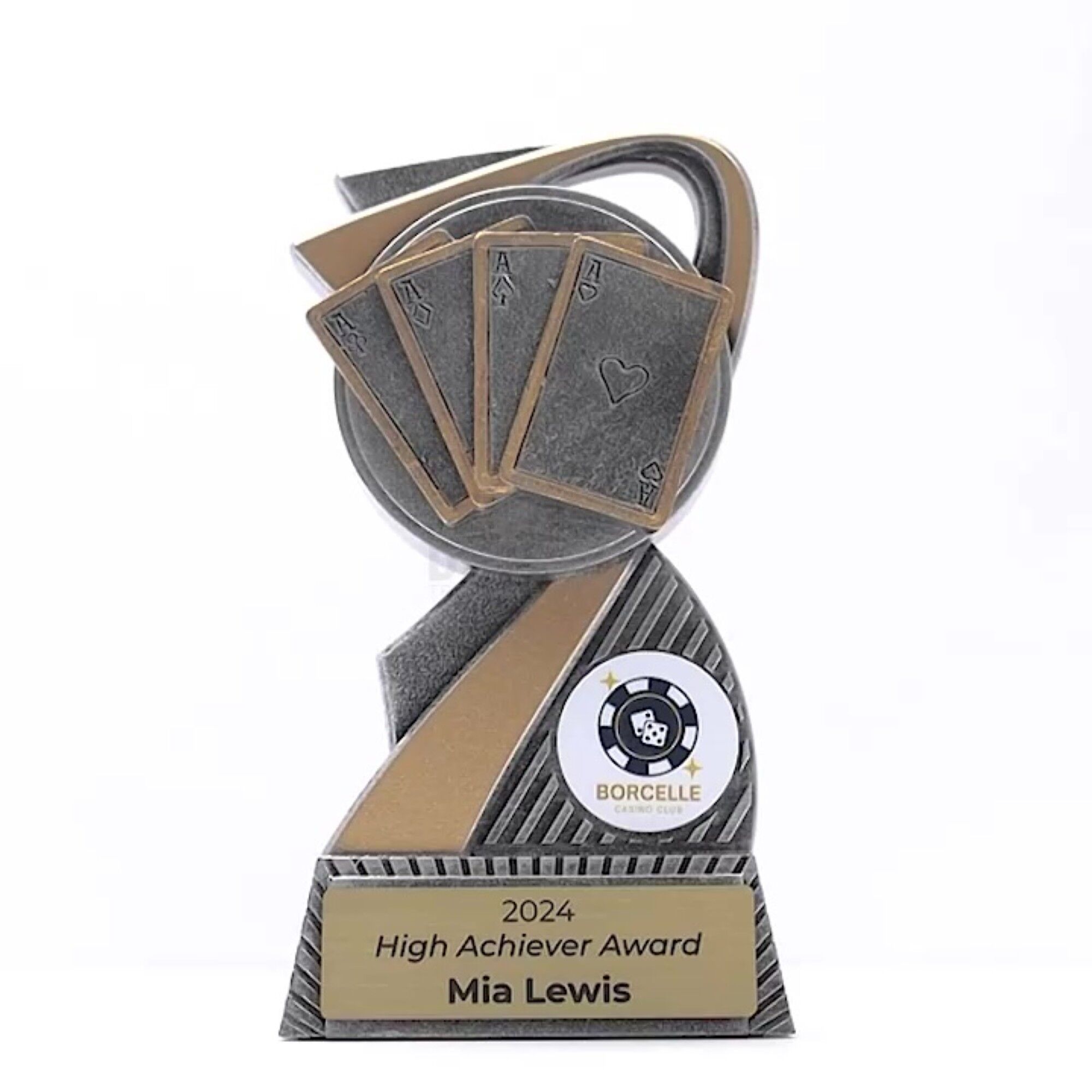 Flarex Trophy Series: Sleek arc-shaped resin trophies, perfect for various sports and events. Available in multiple sizes, with space for a custom image and complimentary laser engraving.