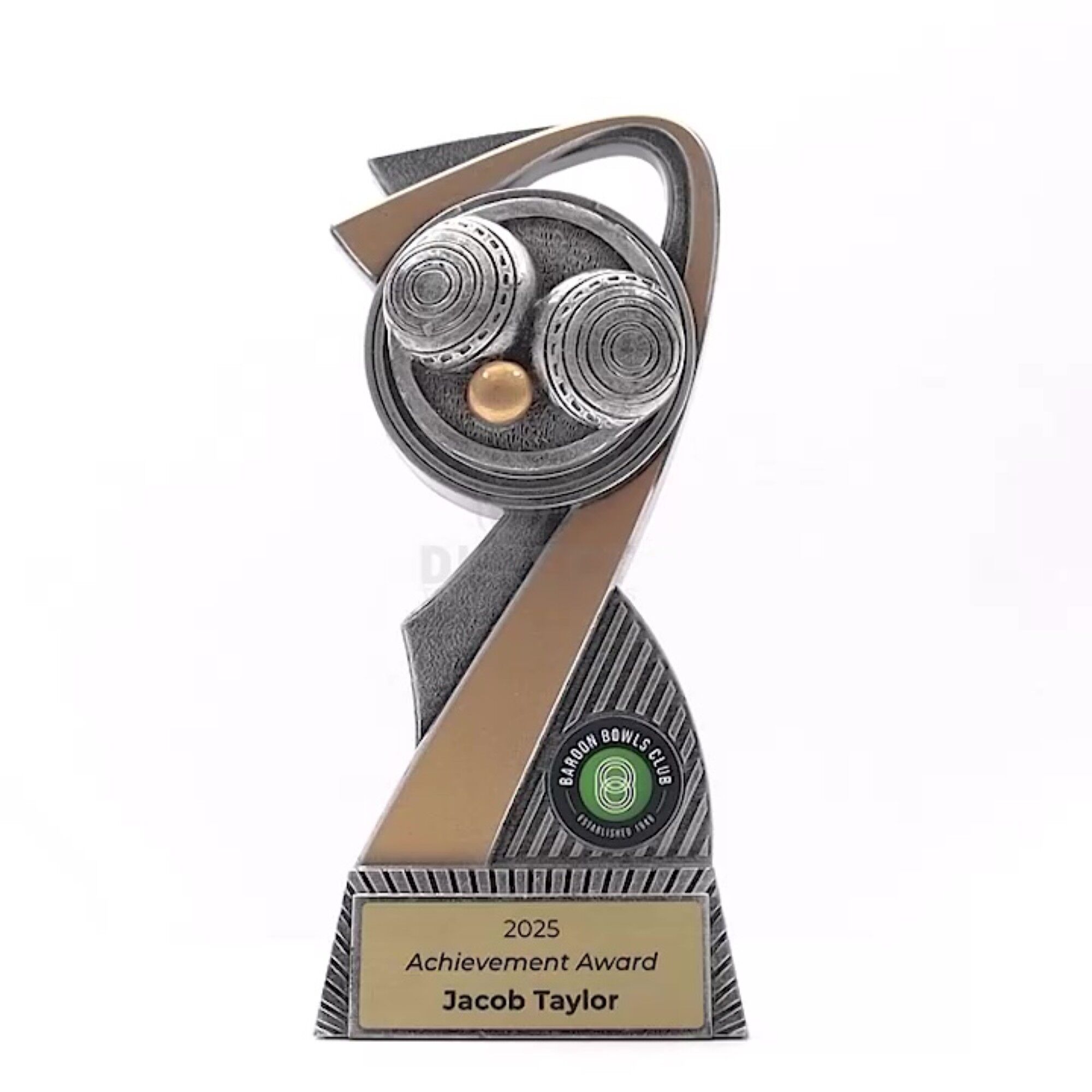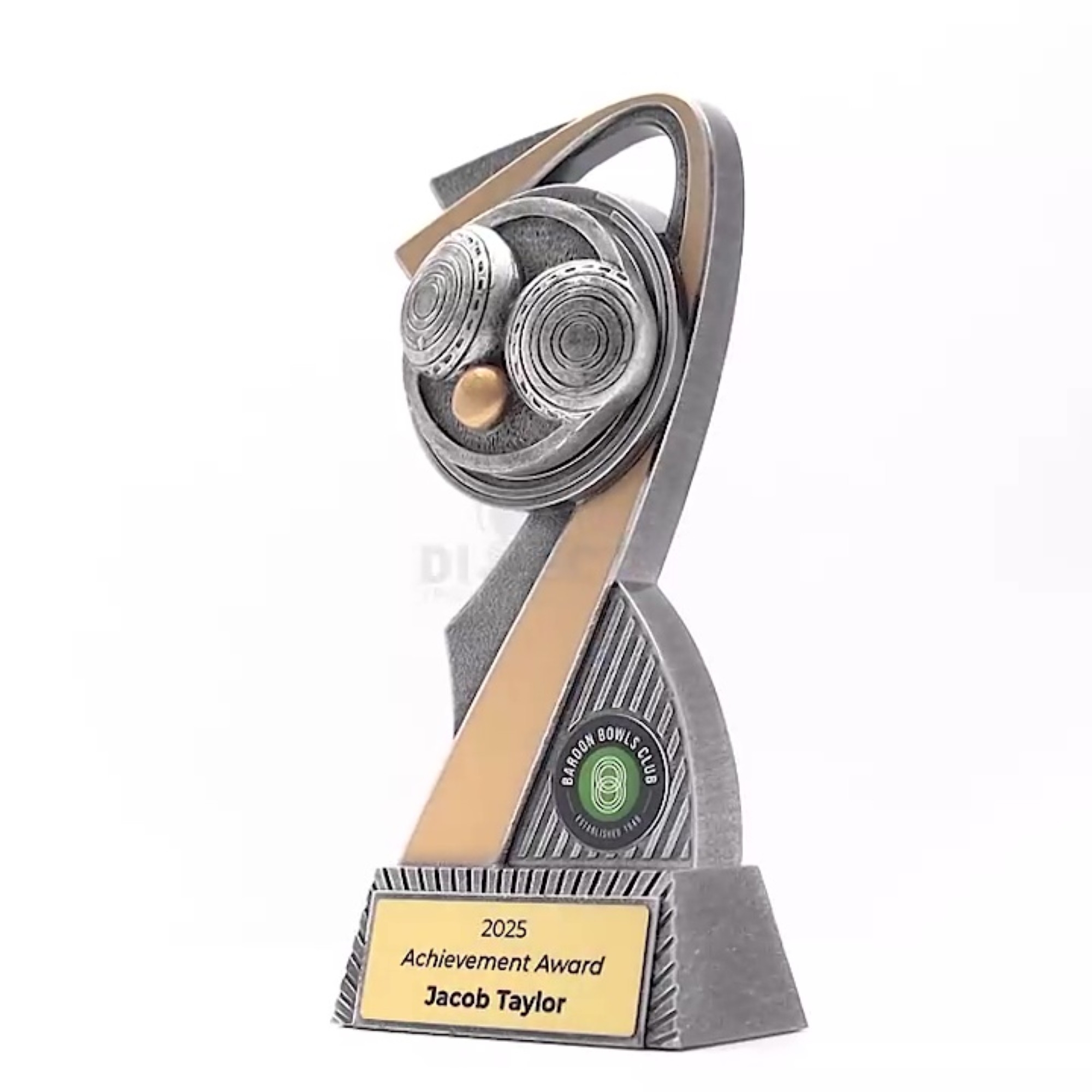 Flarex Trophy Series: Sleek arc-shaped resin trophies, perfect for various sports and events. Available in multiple sizes, with space for a custom image and complimentary laser engraving.