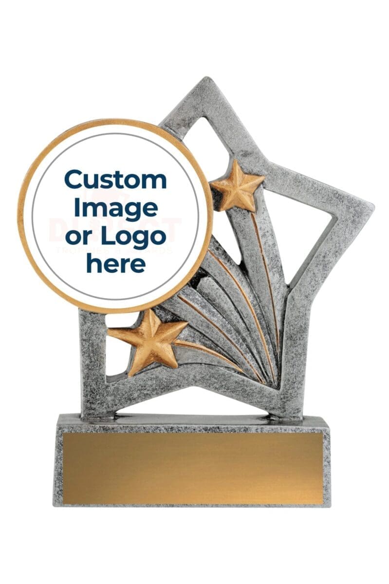Flash Starburst Trophy suitable for any event or occasion. Complimentary colour printed logo or image can be showcased on this award with free engraving on base of trophy.