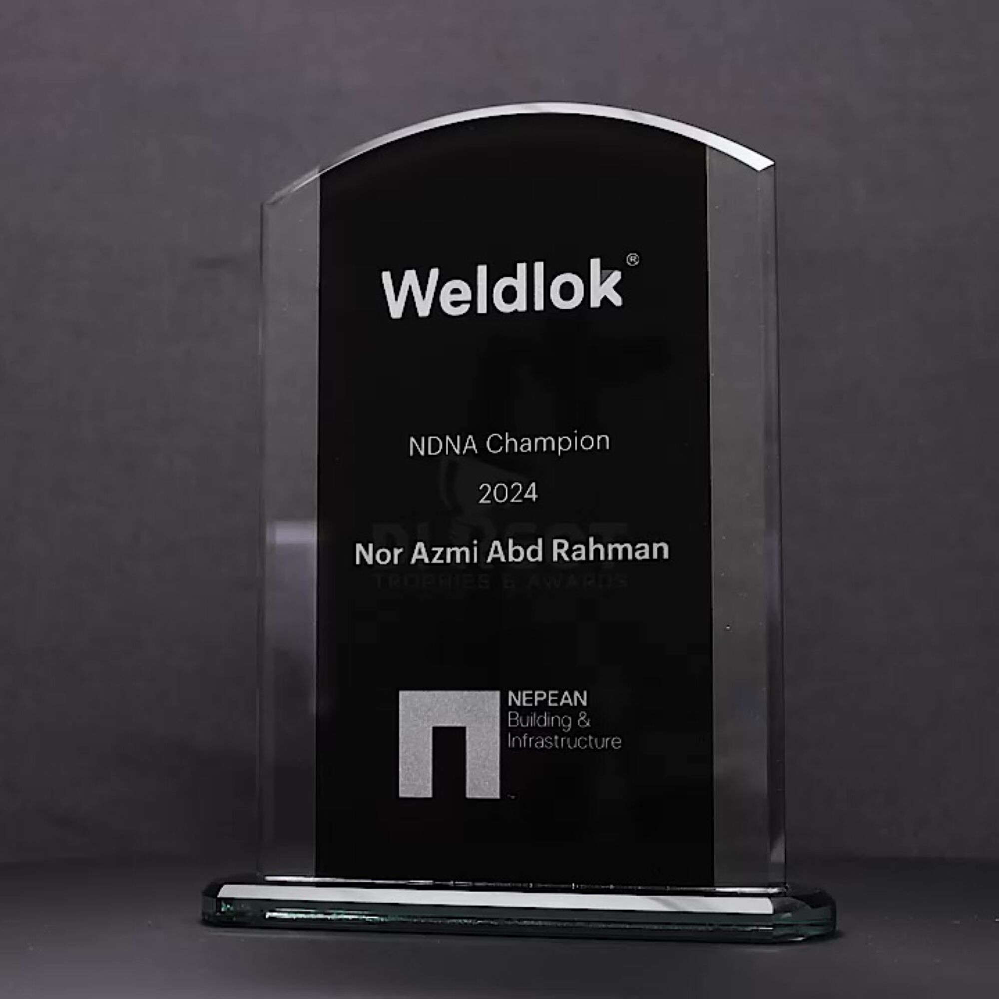Affordable glass award option features a classic arch design and black panelling to allow for precision engraving. The Florence Glass Award is available in 2 sizes and is supplied in presentation gift box. Ideal for corporate and business style events and competitions.