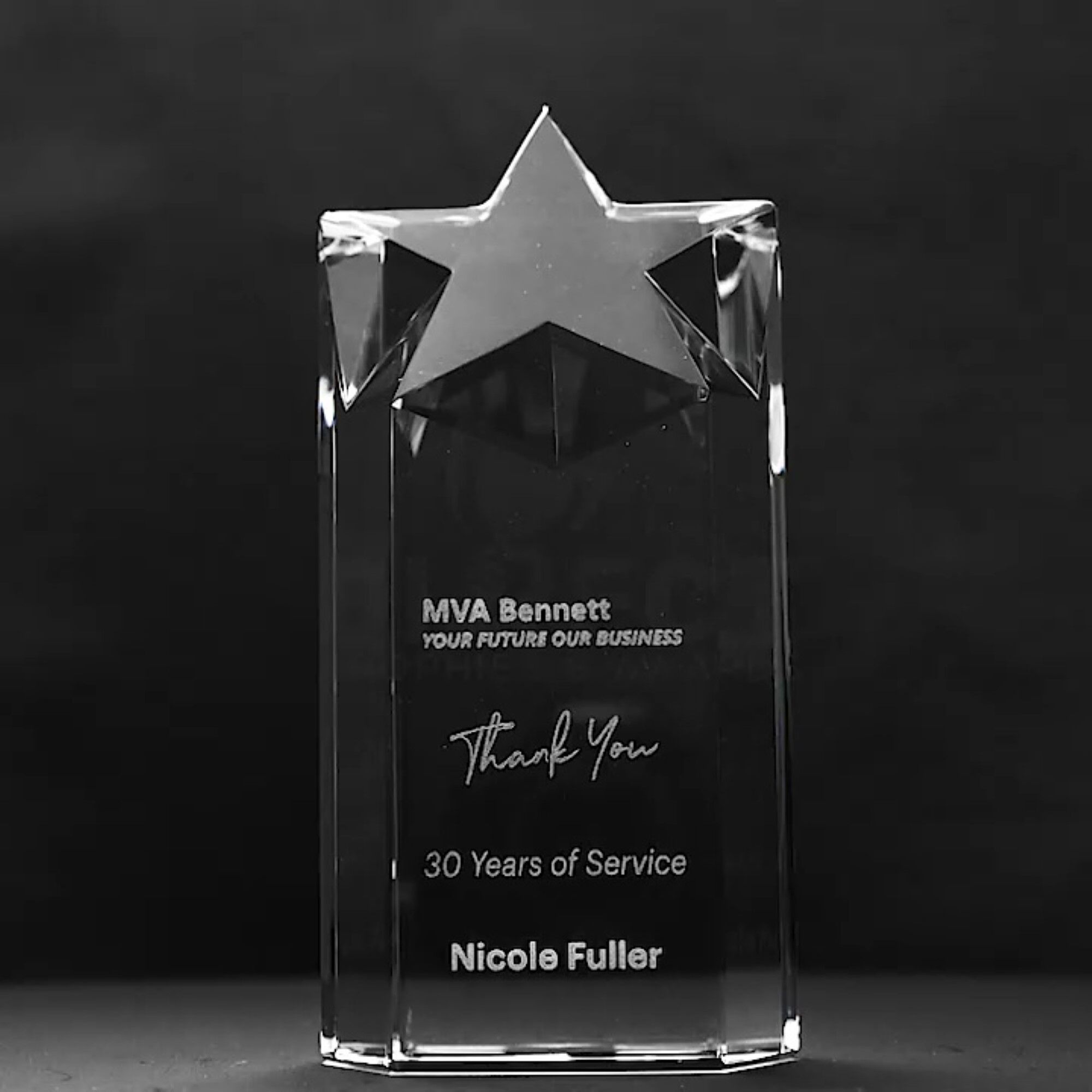 Outstanding crystal series features bold star design and highlighted by distinct facet edges. Awards are substantial in size and feel. Perfect for that special occasion.