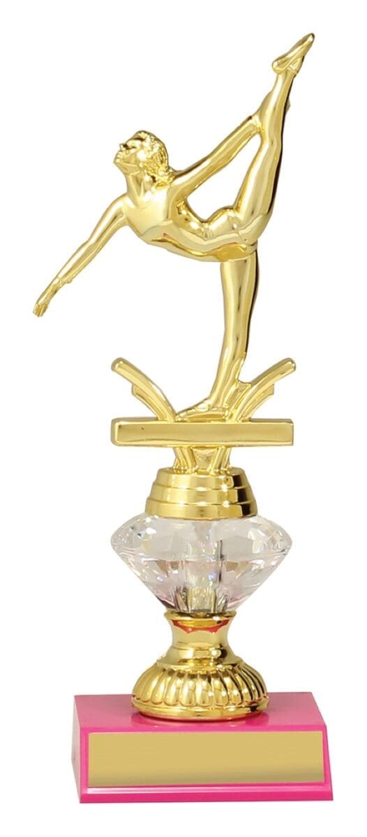 Elevate your dance awards with the Gemstone Pink Dance Trophy Series. These stylish ‘diamond’ trophies embody the essence of victory and are perfect for dance and performing arts achievements. Featuring a pink base and diamond riser, each trophy is adorned with a bright gold dance figure, adding a touch of elegance. Available in multiple sizes and offering free laser engraving, the Gemstone Pink Dance Trophy Series is the ultimate choice to honor exceptional talent and dedication.