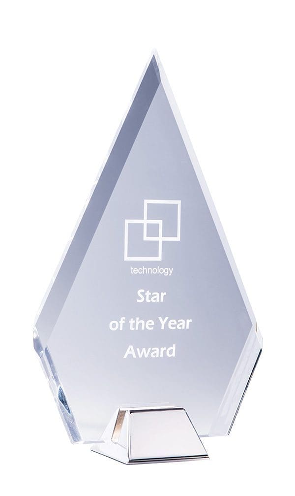 The Glacier Arrow Trophy is an acrylic, arrow-shaped award that stands out. Available in three sizes and presented in a gift box, it’s perfect for recognizing exceptional achievements.