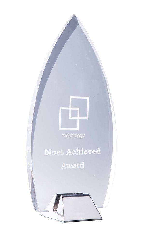 The Glacier Arrow Trophy is an acrylic, flame-shaped award that stands out. Available in three sizes and presented in a gift box, it’s perfect for recognizing exceptional achievements.