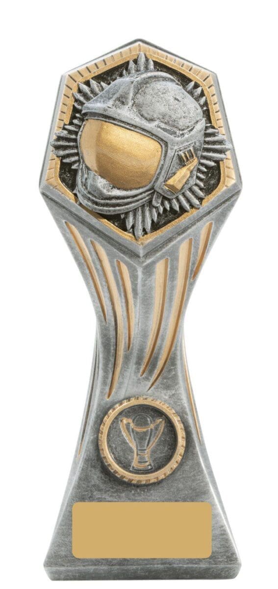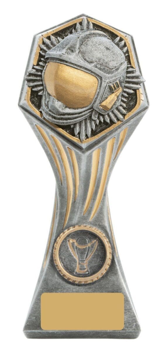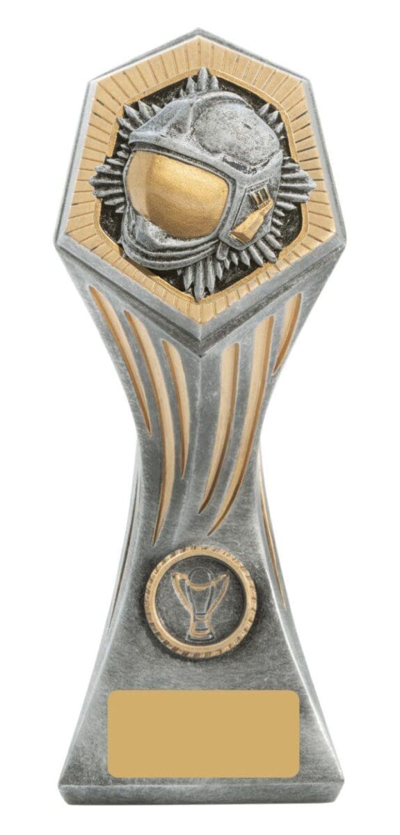 Gladiator trophies series is made of heavy resin material and has 3 sizes. Finished in silver color and gold trim, this trophy is perfect for any occasion. Option to add complimentary colour logo with free personalisation.