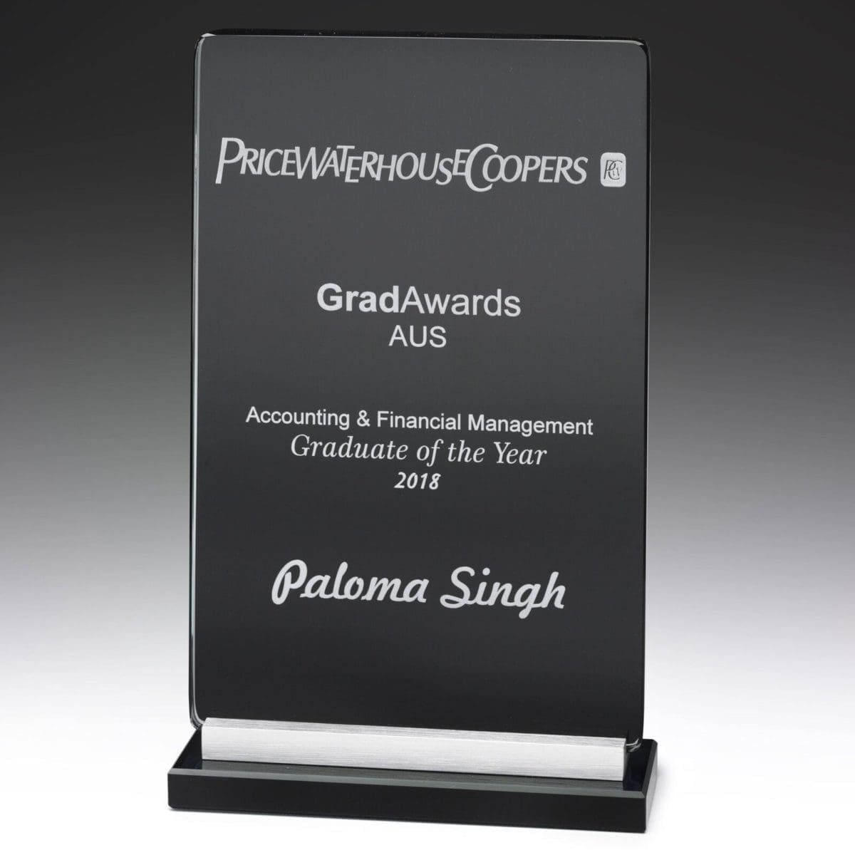 With an imposing design, the Glass Black Broadside is sure to make a bold statement at your awards event. The black panel element in the design of the award elevates the quality of engraving. The brushed metal base element adds to the appeal of the design. Supplied in Gift Box.