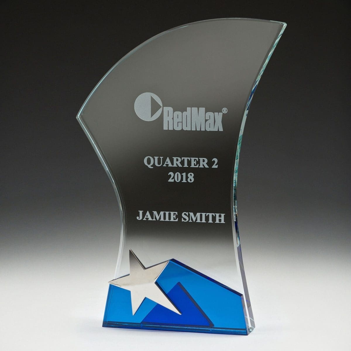 Exciting design provides your award winner with a brilliant alternative. Crystal features vibrant blue colour and star metal accent. Available in 2 sizes – supplied in gift boxes.