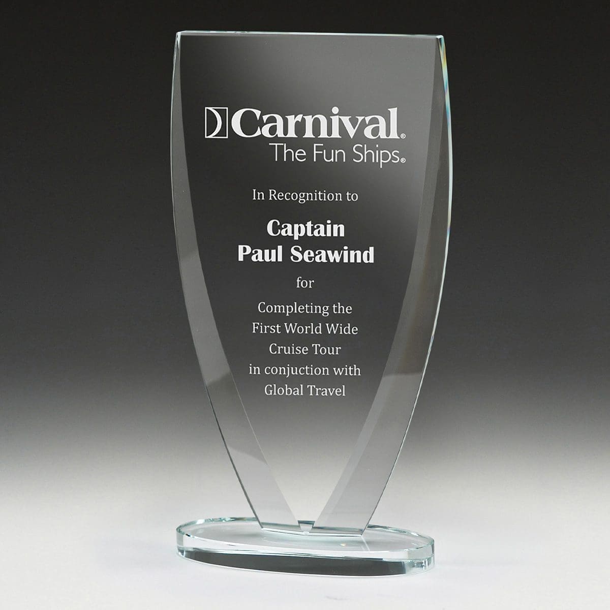 Elegant series of glass awards, the ‘Harp’ series may be well suited to show off your engraving requirements.