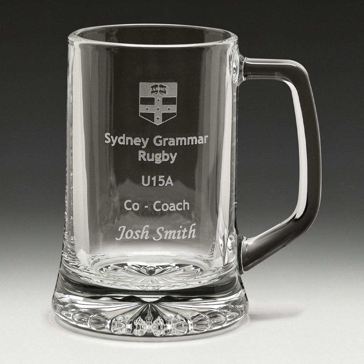 Glass tankard part of the range of premium glassware. A popular engravable award and gift idea particularly suited to recognise the achievements of your sporting club or team. Optional double side engraving and gift box.