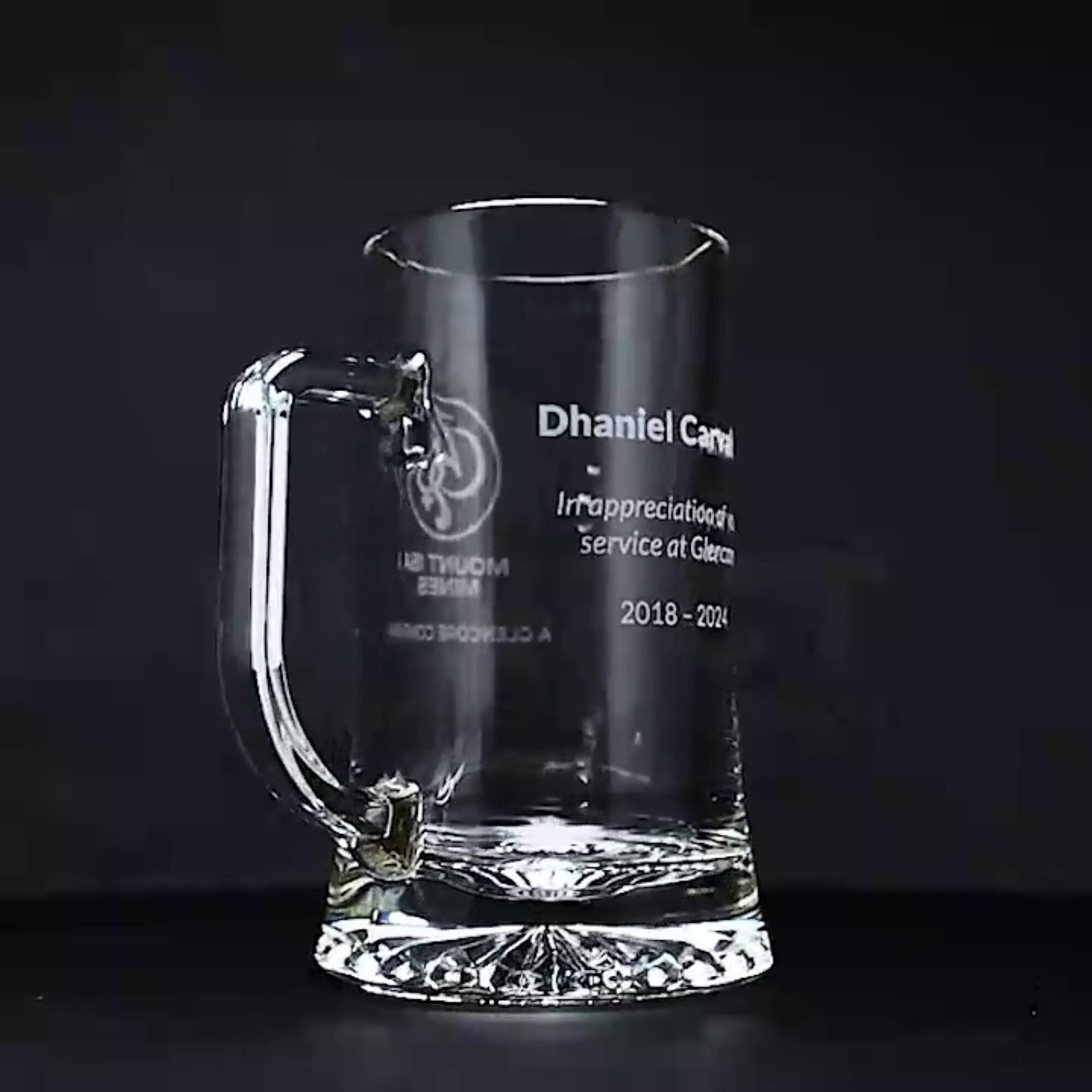 Glass tankard part of the range of premium glassware. A popular engravable award and gift idea particularly suited to recognise the achievements of your sporting club or team. Optional double side engraving and gift box.