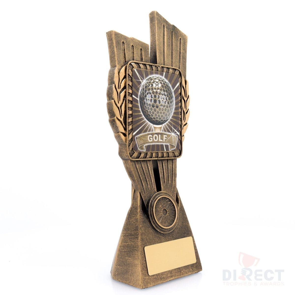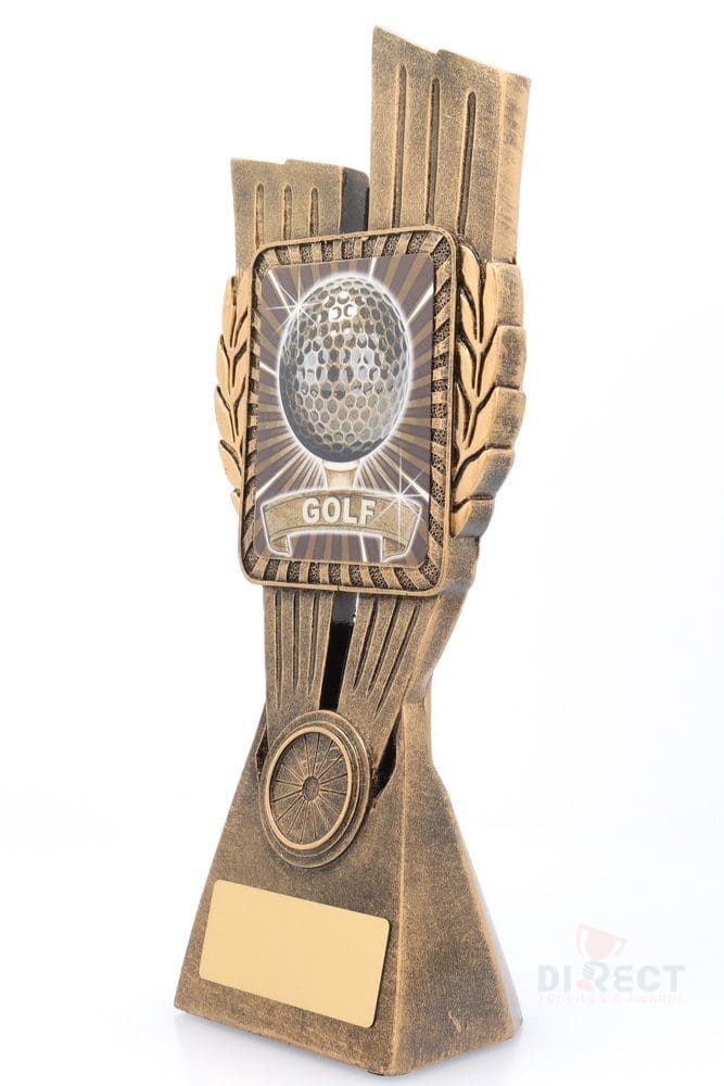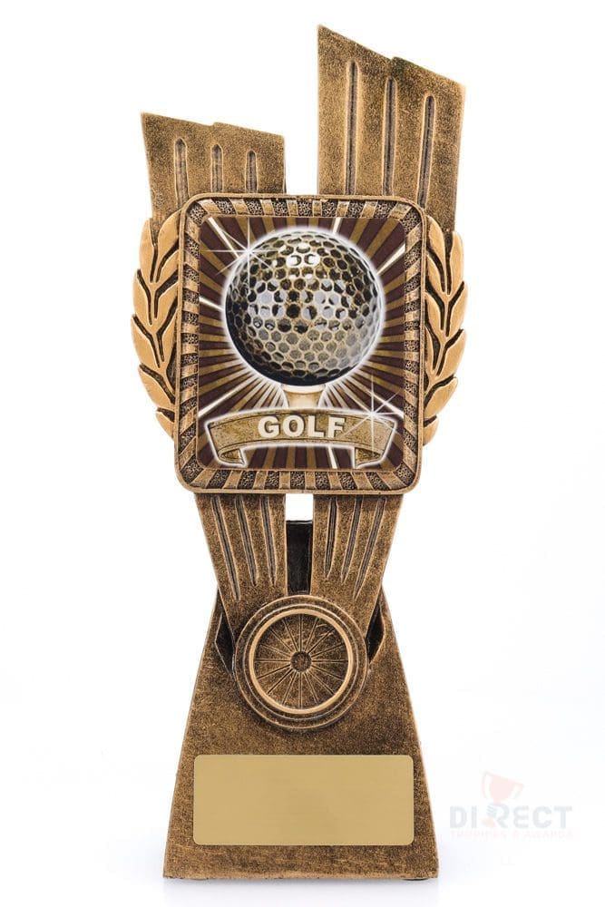 This Antique Gold Lynx Trophy is the perfect theme award for Golf competitions and events. Featuring a classic wreath and vibrant design, Golf trophies are customisable and available in 4 impressive sizes.