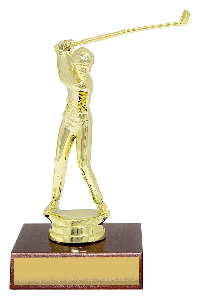 Introducing the Golf Walspire Trophy Series: Experience the timeless charm of these traditional wooden trophies featuring a golfer captured in dynamic motion. With their classic design and budget-friendly pricing, they are an excellent choice for recognizing achievements. Enjoy the added perk of free laser engraving to personalize your trophies.