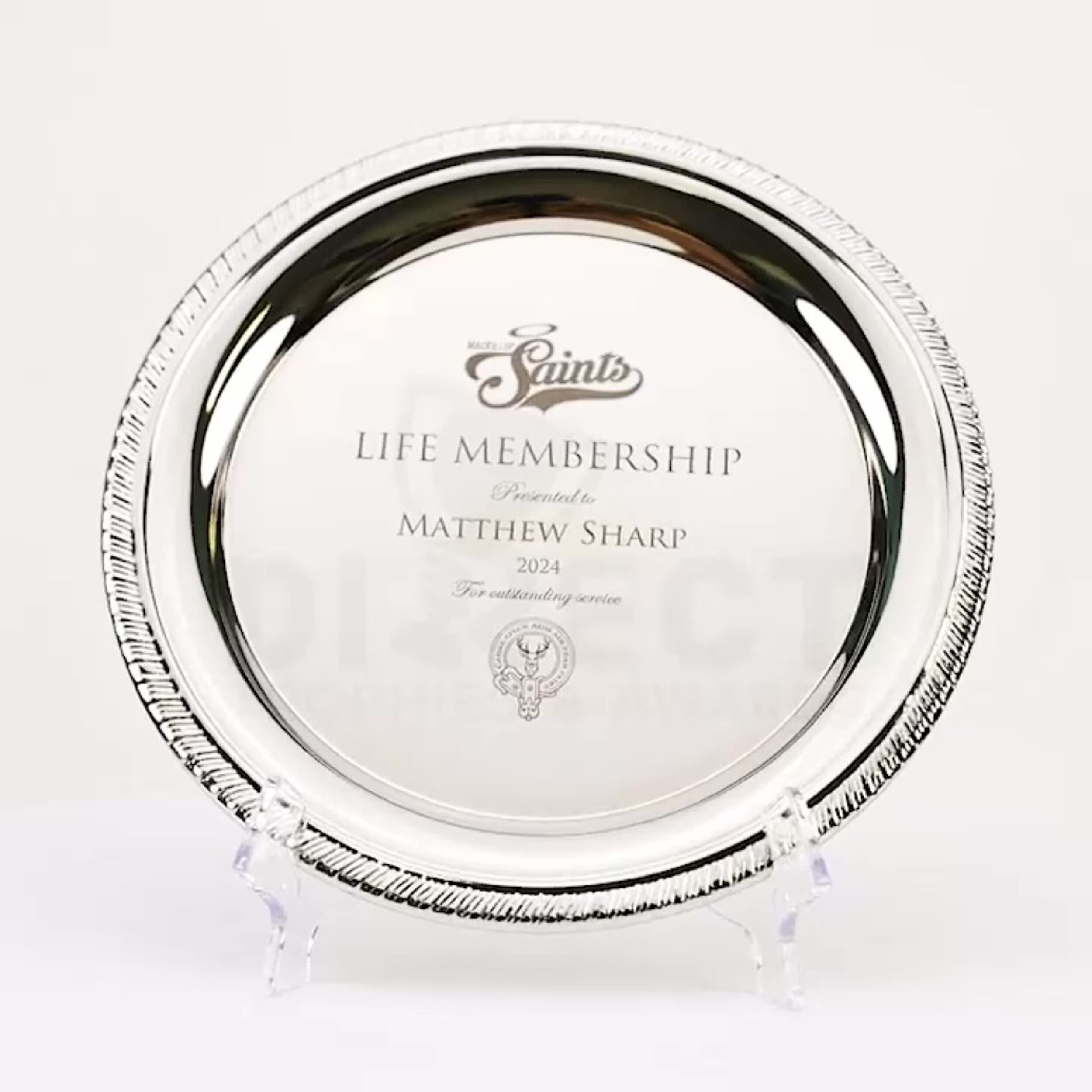 Introducing the Grandiose Metal Tray: This exquisite metal tray comes with a complimentary clear acrylic stand for elegant display. Add a touch of sophistication to your gift with the optional gift box. Customize your tray with our free laser engraving service. A perfect choice for special occasions and memorable gifts.