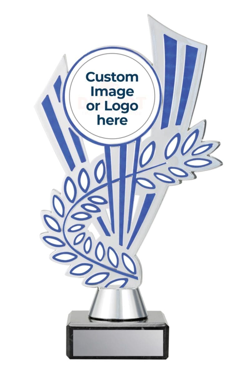 Harvest Silver Blue Trophy suitable for any event or occasion. Complimentary colour printed logo or image can be showcased on this award with free engraving on base of trophy.