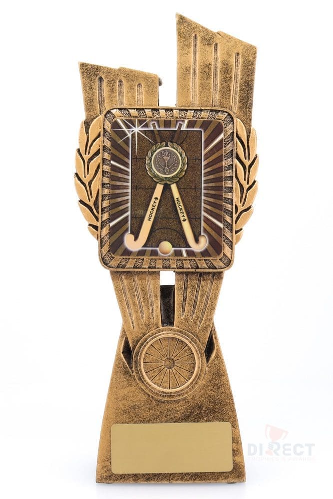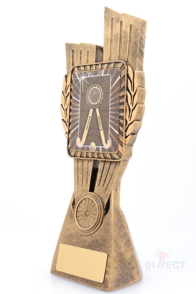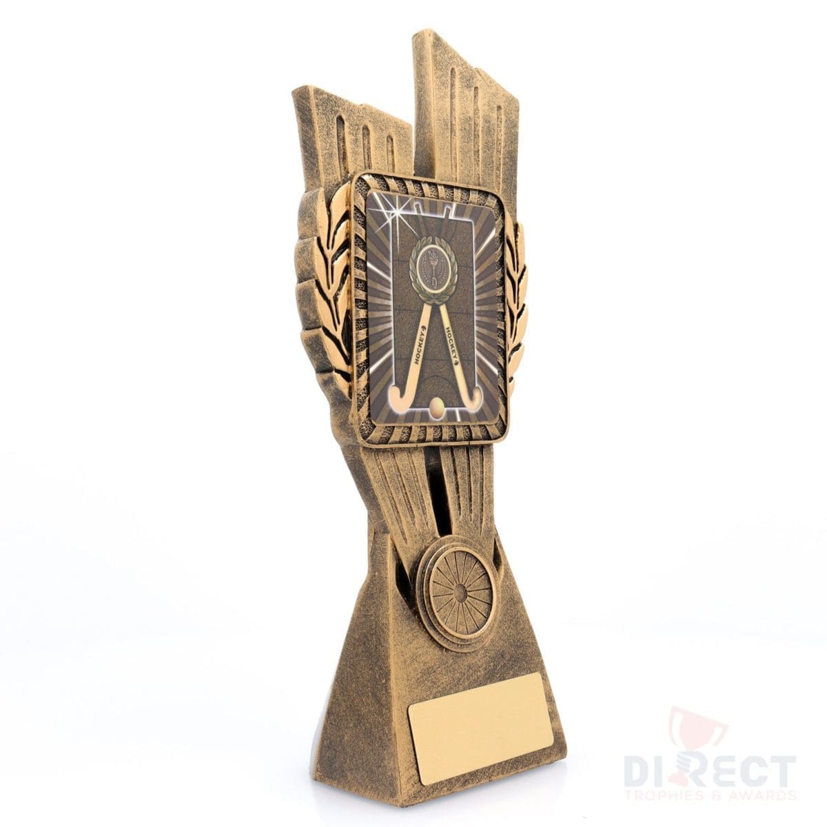 This Antique Gold Lynx Trophy is the perfect theme award for Hockey, boys or girls and all ages. Featuring a classic wreath and vibrant design, hockey trophies are customisable and available in 4 impressive sizes.